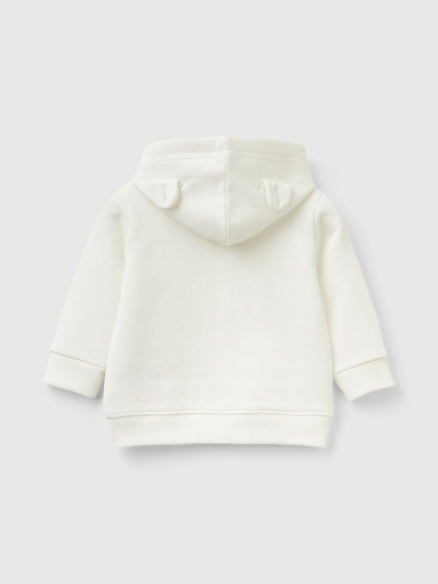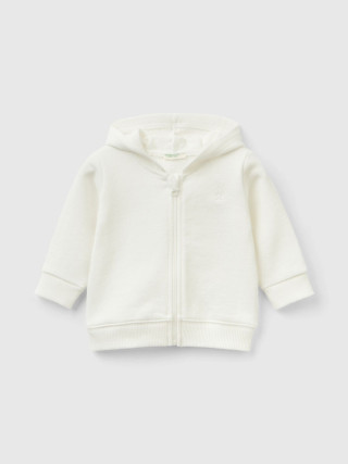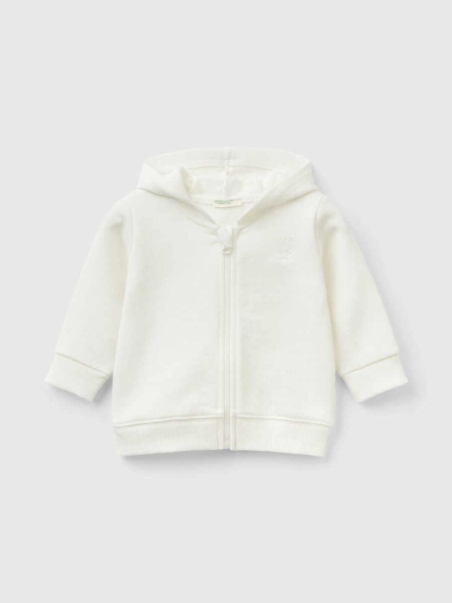 Benetton mekana dukserica za bebe od čistog organskog pamuka koja je ujedno čvrsta i lagana. Logo zeke izvezen na levoj strani grudi i otvara se sa patent zatvaračem. Praktična i zabavna sa svojom kapuljačom koja ima uši od žerseja.
