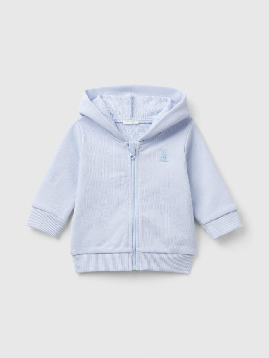 Benetton mekana dukserica dugih rukava za bebe od čistog organskog pamuka sa čvrstim, ali laganim osećajem. Logo zeke izvezen na levoj strani grudi i otvara se sa patent zatvaračem. Praktičan i zabavan sa kapuljačom koja ima uši.