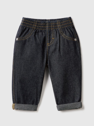 Benetton pantalone za bebe od čistog pamučnog teksasa sa pohabanim izgledom. Pune detalja: lažni džepovi u zapadnom stilu na prednjoj strani, lažni preklop, džepovi našiveni pozadi. Maksimalna funkcionalnost zahvaljujući struku sa unutrašnjom elastičnom trakom.
