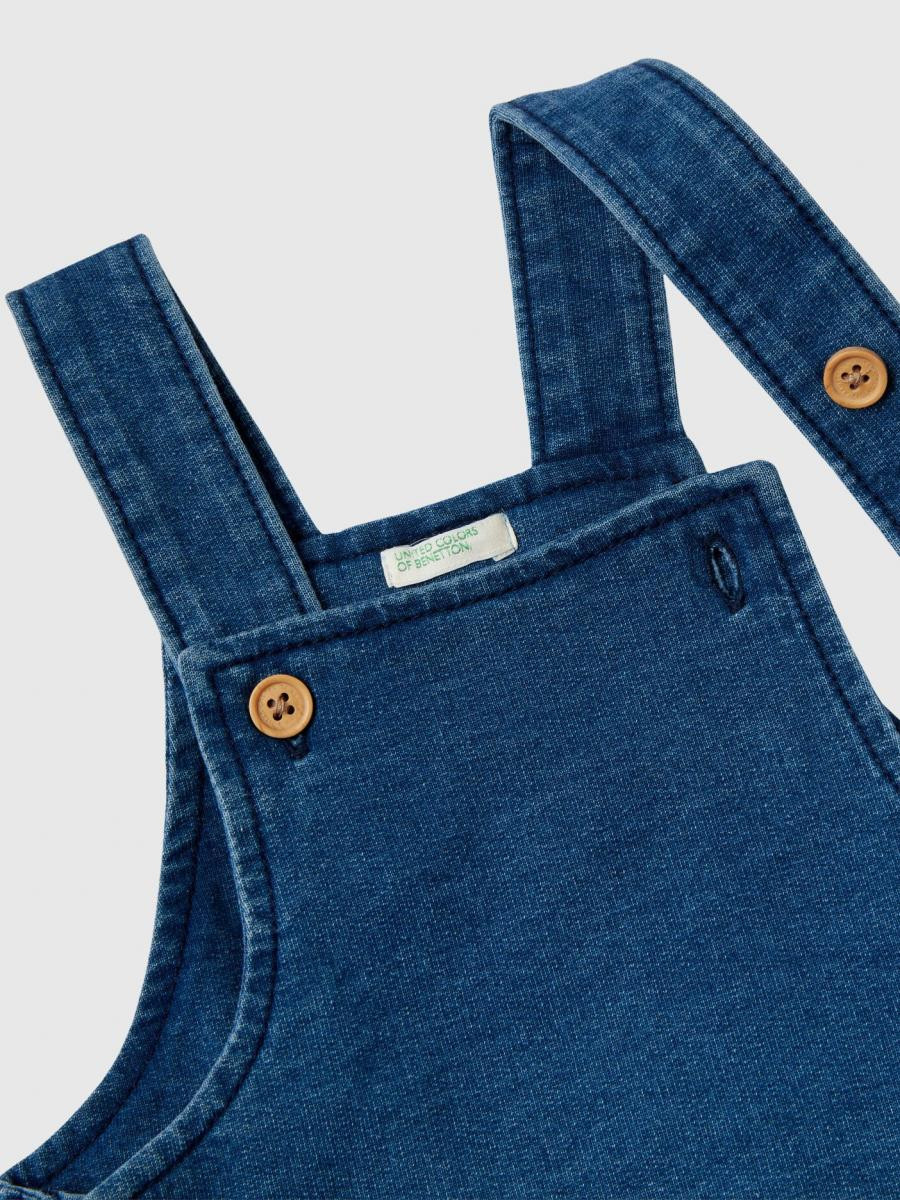 Benetton šorts na tregere za bebe od džinsa od rastegljive mešavine pamuka, sa fiksnim ukrštenim naramenicama na leđima. Našiveni džepovi na prednjoj strani i džep sa vezom na leđima. Udoban i moderan komad, podstavljen čistim pamukom.