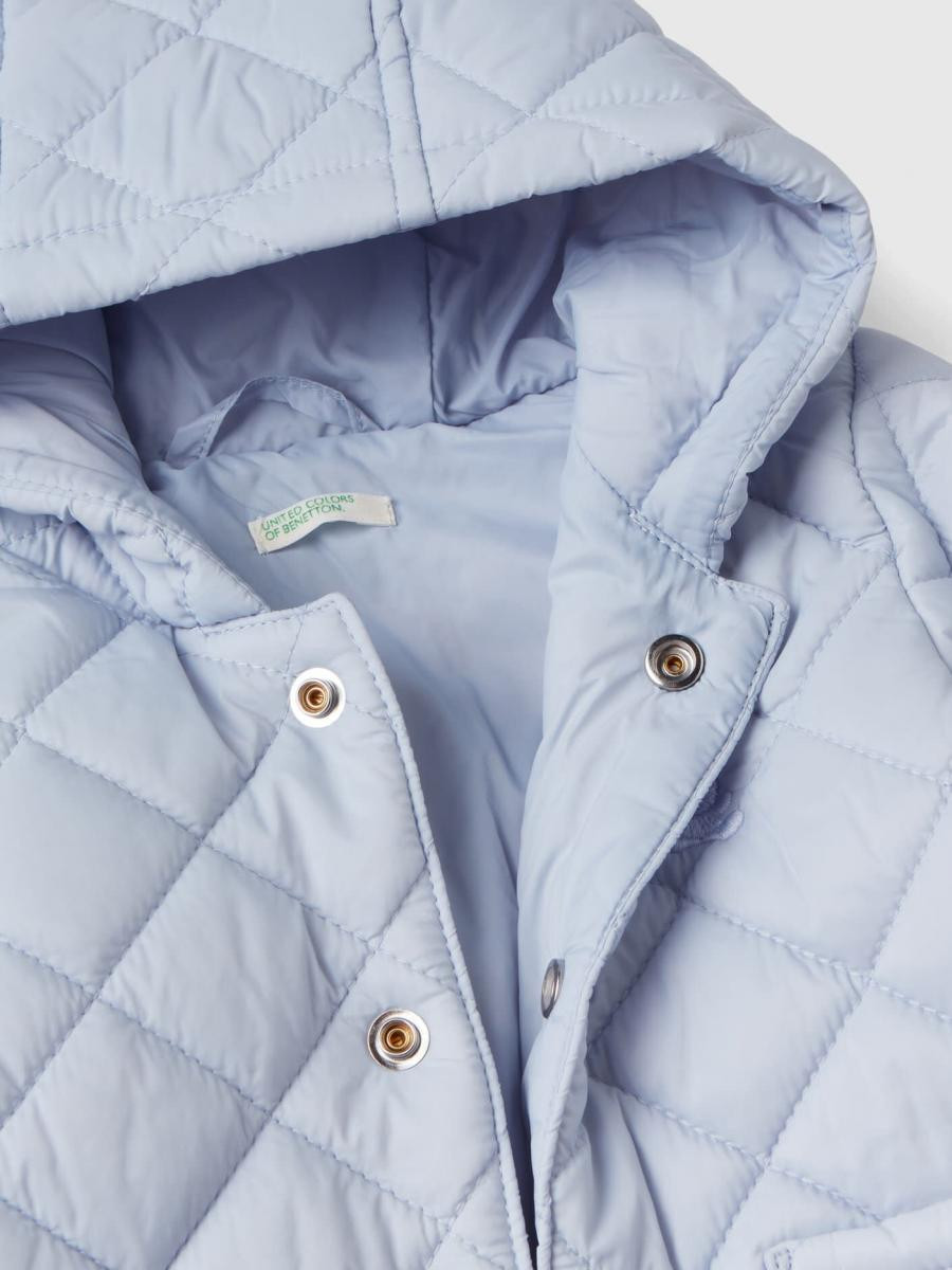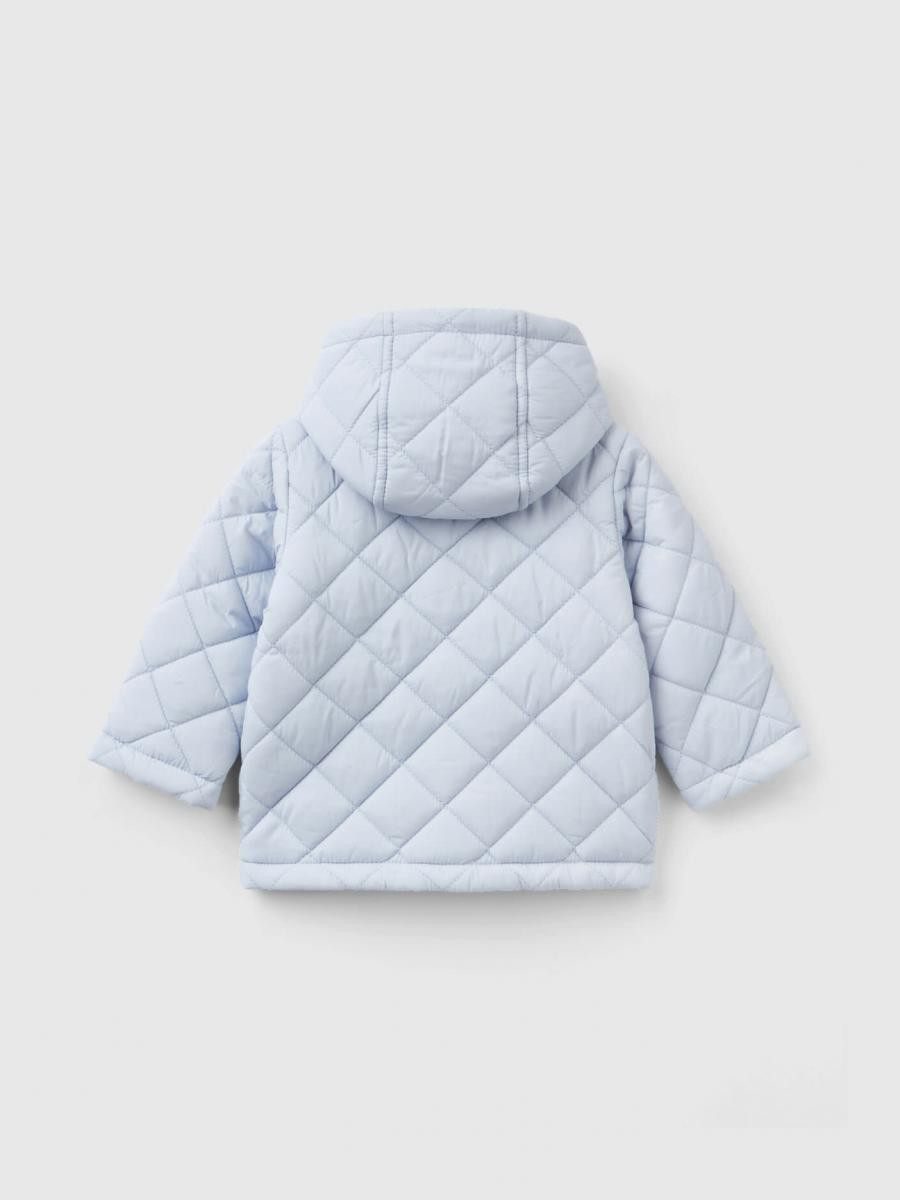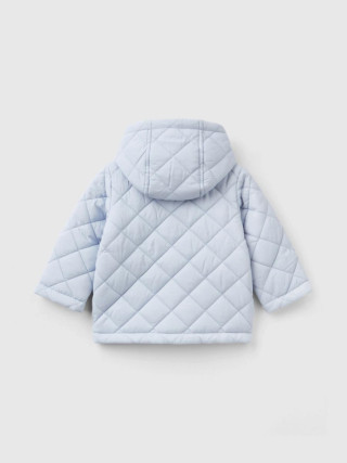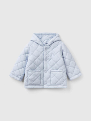 Benetton jakna sa kapuljačom za bebu, kopčanje na dugmiće i klasično prošivanje. Prednji našiveni džepovi, logo zeke izvezen na levoj strani grudi. Napravljena od meke tkanine sa laganom podstavom, idealan za nošenje u prelaznom periodu.