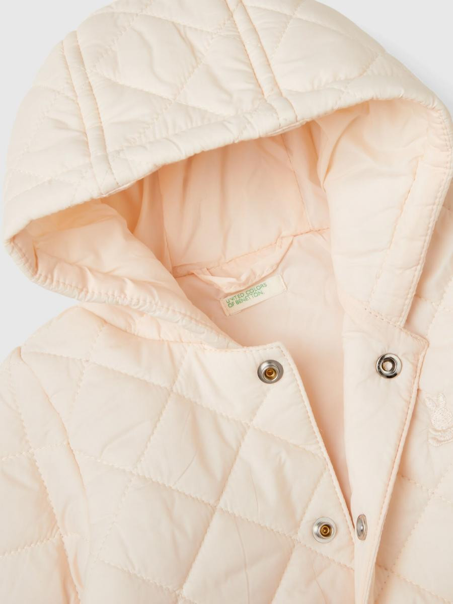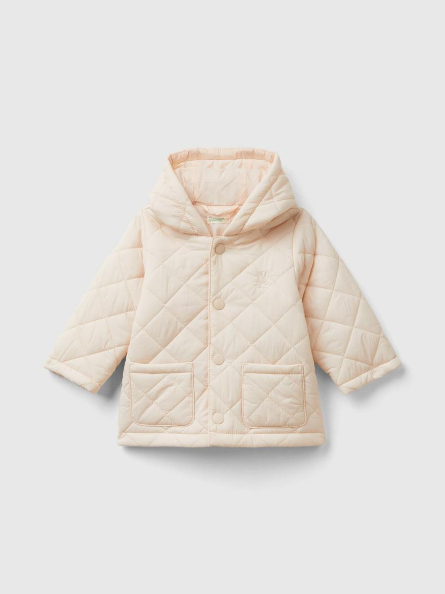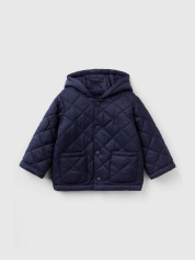 Benetton jakna sa kapuljačom za bebu, kopčanje na dugmiće i klasično prošivanje. Prednji našiveni džepovi, logo zeke izvezen na levoj strani grudi. Napravljena od meke tkanine sa laganom podstavom, idealan za nošenje u prelaznom periodu.