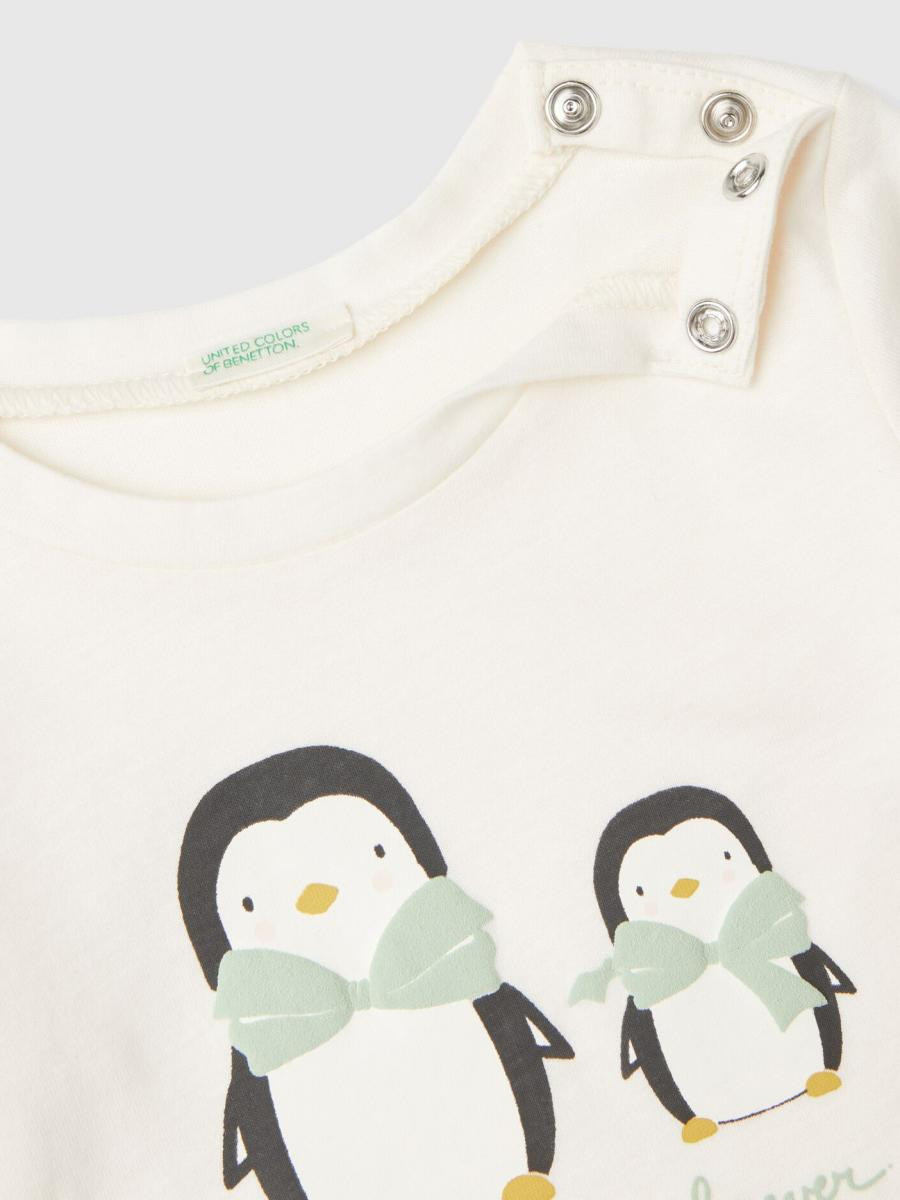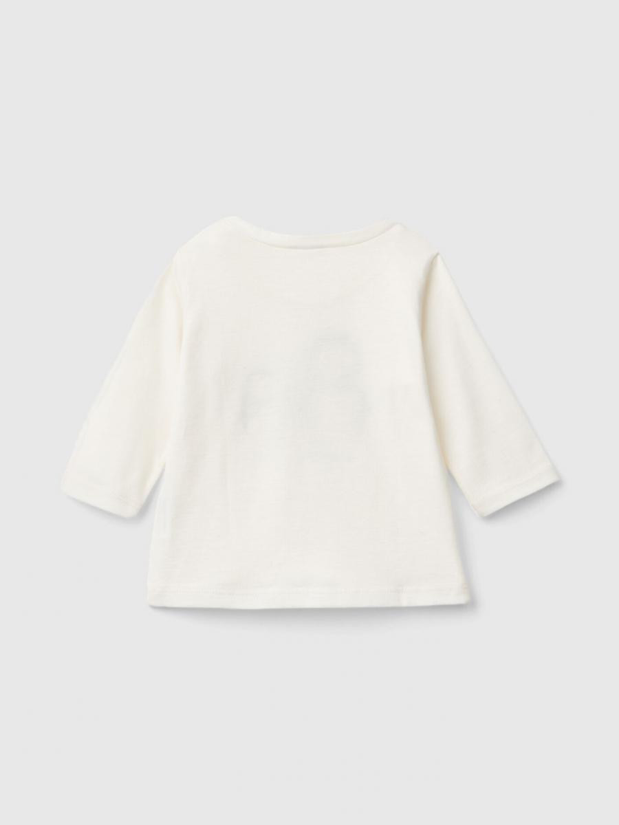 Benetton majica dugih rukava za bebe od čistog toplog organskog pamuka. Okrugli vrat i praktično otvaranje sa dugmadima na levim ramenima. Šarena štampa na prednjoj strani.