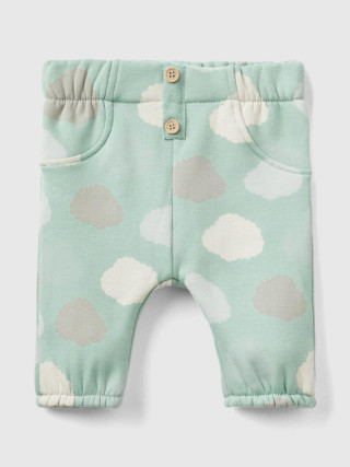 Benetton donji deo trenerke za bebe od elastičnog flisa od mešavine pamuka sa toplim osec´ajem i mekom postavom. Udobna unutrašnja elastična traka u struku i na otvoru za noge. Lažni džepovi i lažni preklop sa ukrasnim dugmićima na prednjoj strani. Lepa šarena štampa na celom delu. Mekana, udobna i nežna za kožu.