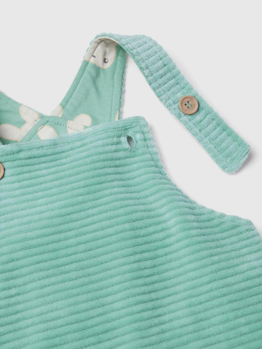 Benetton pantalone na tregere za bebe od mekane rastegljive pamučne mešavine, sa postavom od čistog pamuka. Zabavna životinjska štampa unutra. Opušten kroj, udobne fiksne naramenice i elastična traka na leđima. Skriveni otvor sa dugmićima na međunožju. Udobne i moderne.