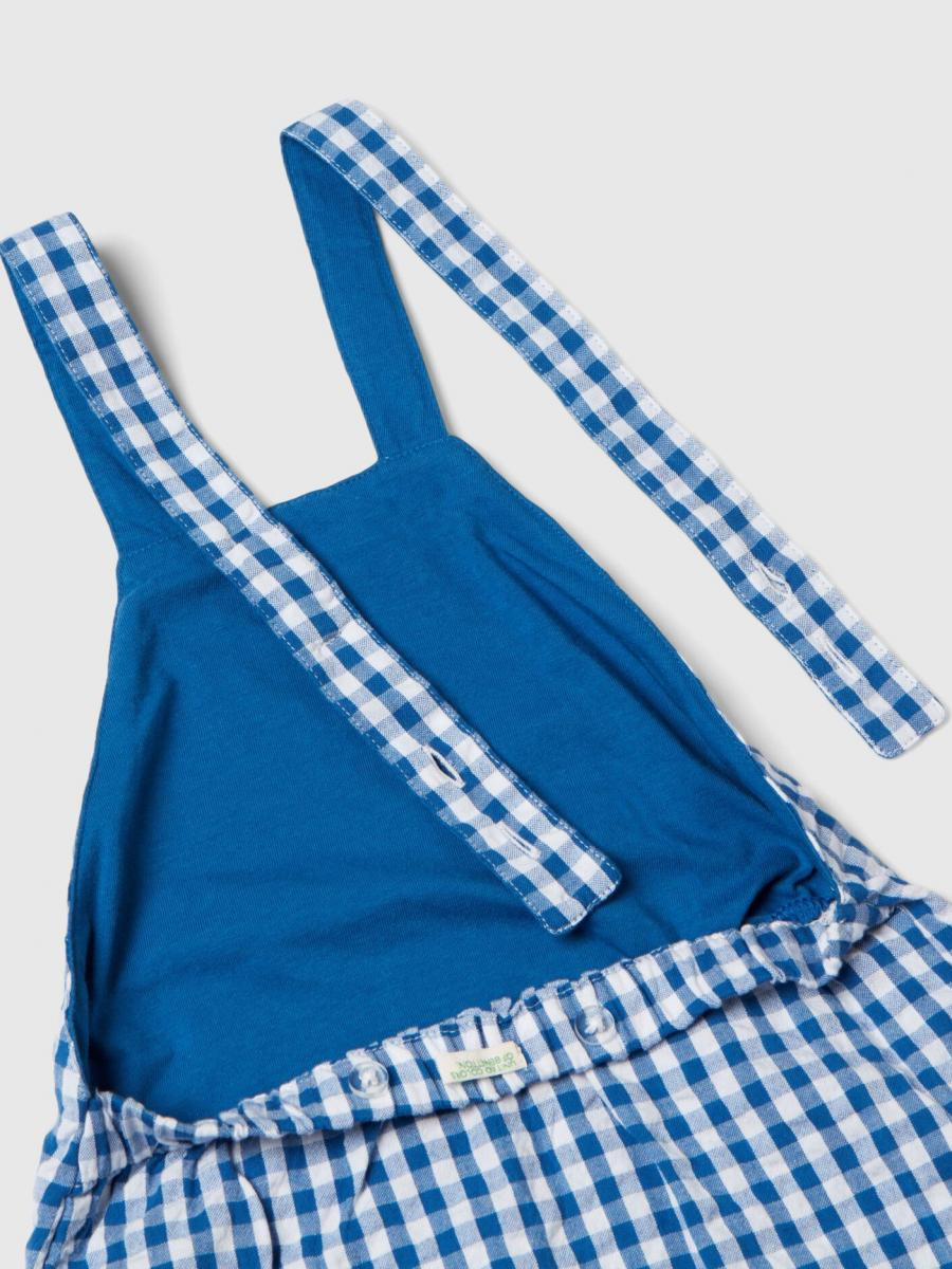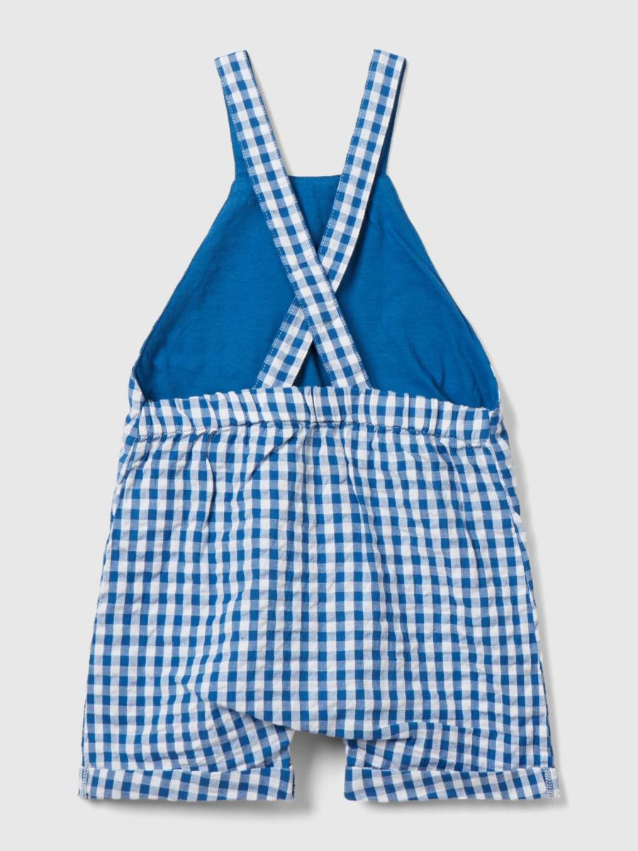 Benetton šorts na tregere za bebe od meke tkanine od čistog pamuka. Fiksirane uvrnute naramenice sa elastičnom trakom pozadi i džepom na grudima.