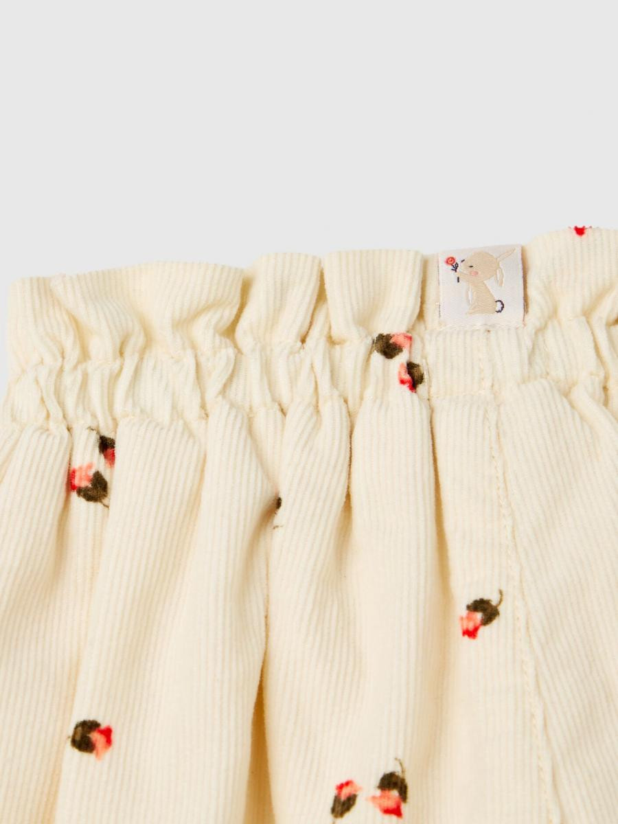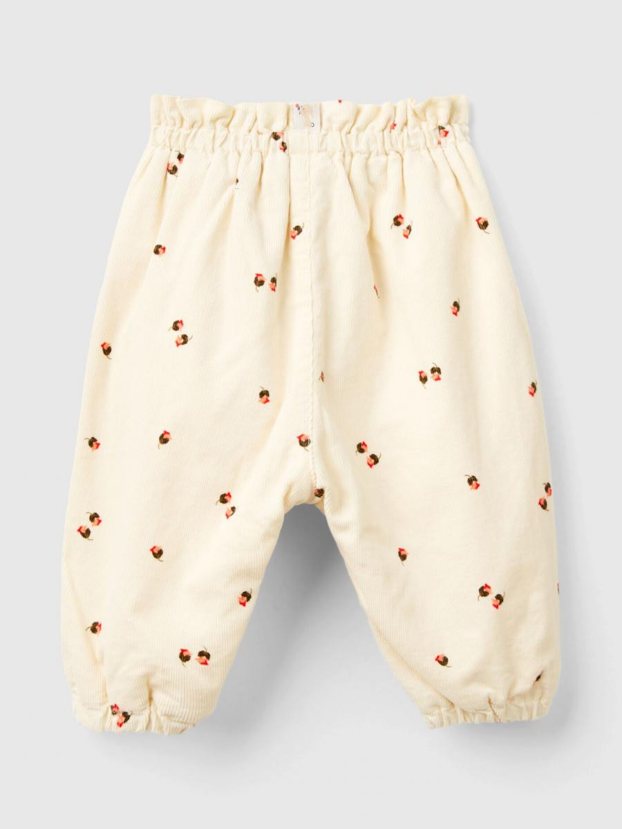 Benetton pantalone za bebe od rebrastog cistog pamucnog somota, podstavljene toplom mešavinom viskoze. Skupljeni struk sa unutrašnjom elasticnom trakom i ukrasnom mašnom na prednjoj strani.