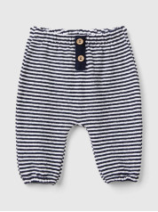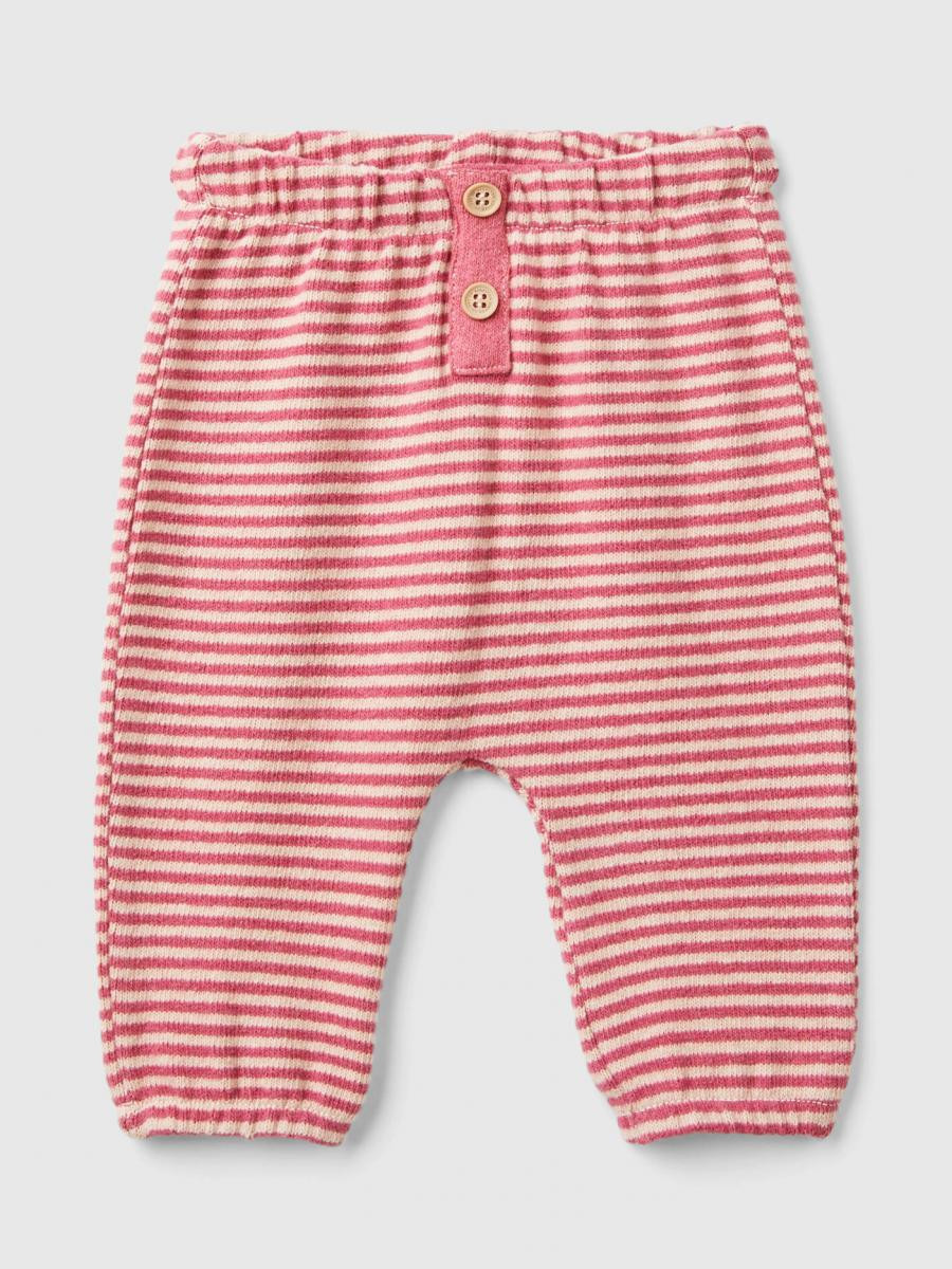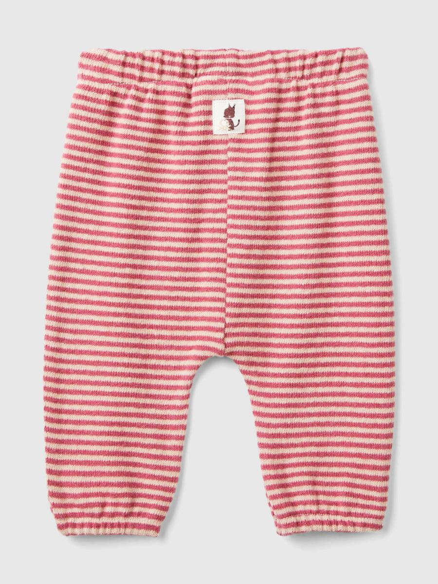 Benetton donji deo trenerke za bebe od dvobojne mešavine pamuka sa prugama obojenim predivom. Elastična u struku i donjem delu nogu. Ukrasna dugmad u izgledu drveta na prednjoj strani. Slatko i u trendu.