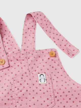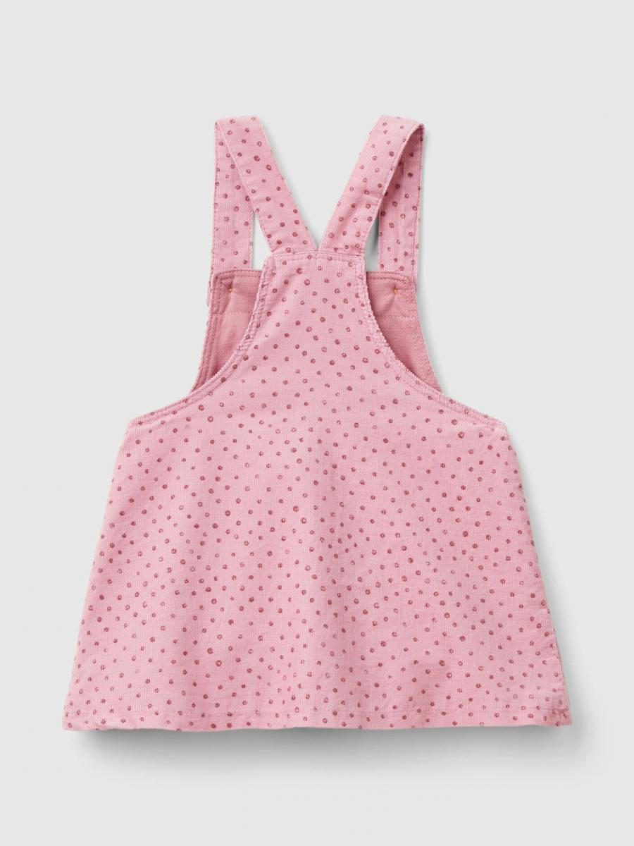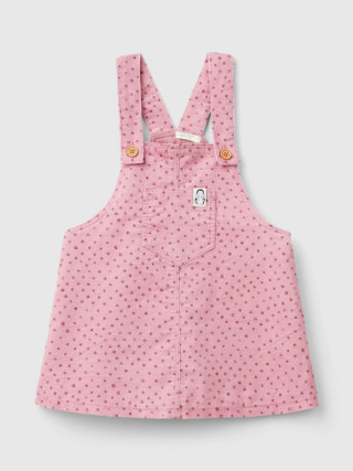 Benetton suknja na tregere za bebe od rebrastog cistog pamucnog somota, podstavljena toplom mešavinom viskoze. Fiksne naramenice ukrštene na ledima, našiven džep na prednjoj strani.