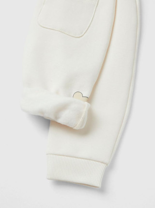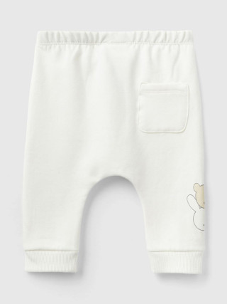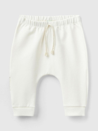 Benetton donji deo trenerke za bebe od elastičnog pamučnog flisa sa toplim osec?ajem. Unutrašnja elastična i dekorativna vezica sa resicama u struku. Životinjski print duž zadnje strane desne noge i našiven džep na zadnjoj strani. Udoban i lak za kombinovanje.