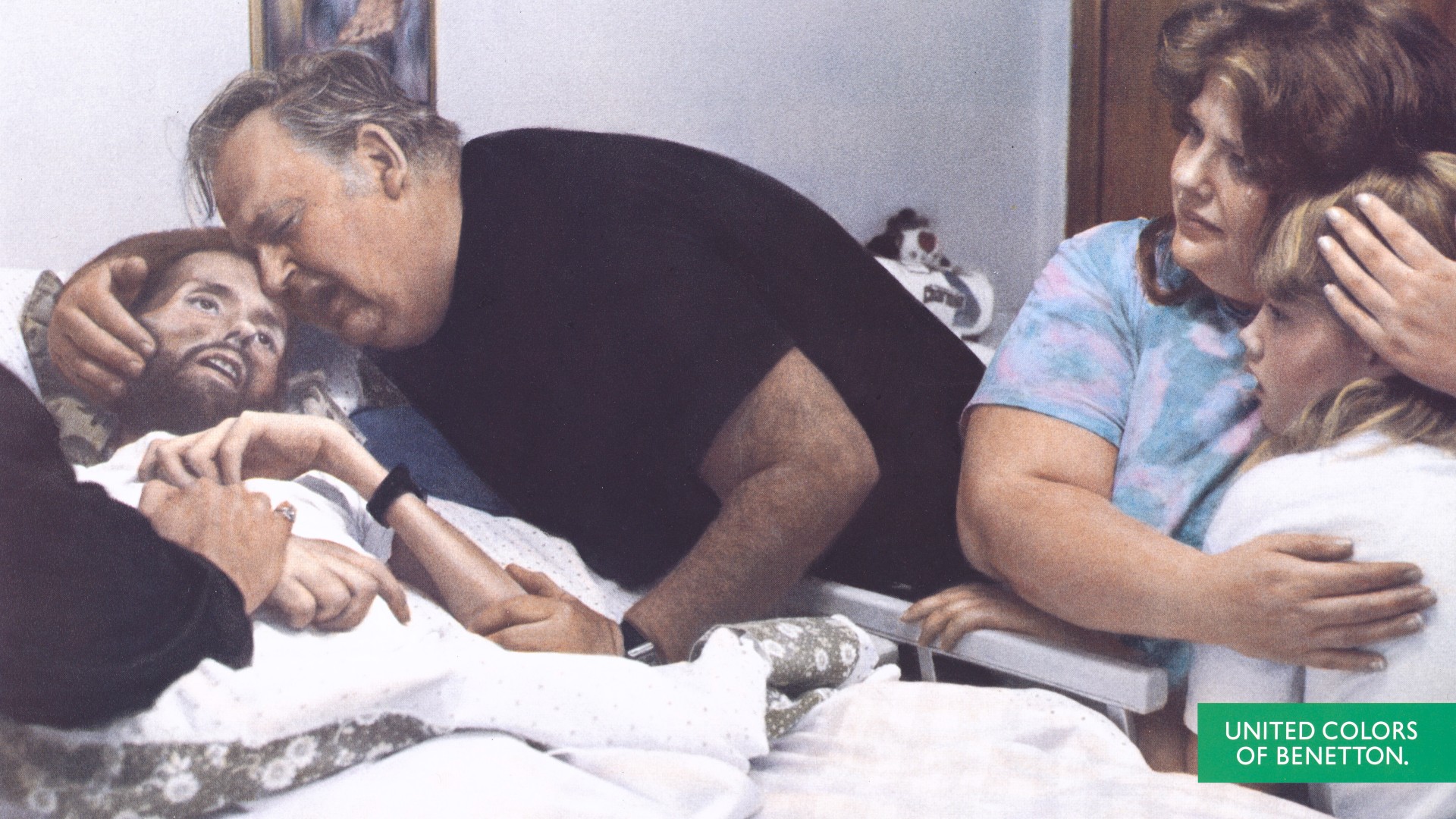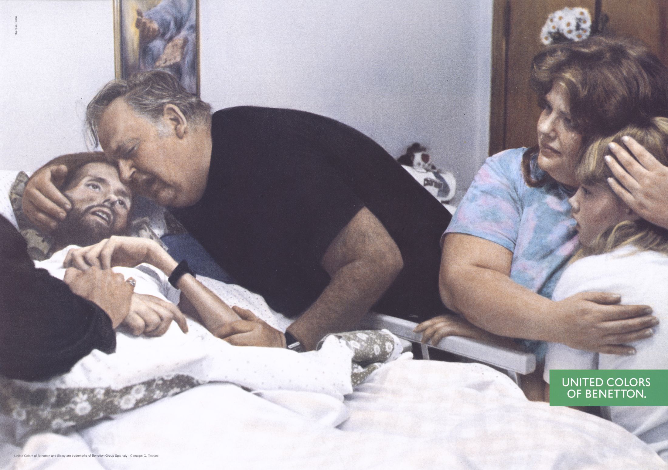 Jedan od obolelih je bio i američki aktivista David Kirby koji je svoje poslednje dane proveo u hospisu okružen svojoj porodicom. Slika koju vidite je nastala u poslednjim trenucima njegovog života kad ga njegov očajni otac grli. U dogovoru sa porodicom Kirby, United Colors of Benetton je ovu fotografiju uzeo za svoju vodeću i jedinu fotografiju za kampanju 1992. godine u želji da podigne svest o bolesti, posledicama i promeni dotašanji dehumanizujući odnos prema AIDS pacijentima.