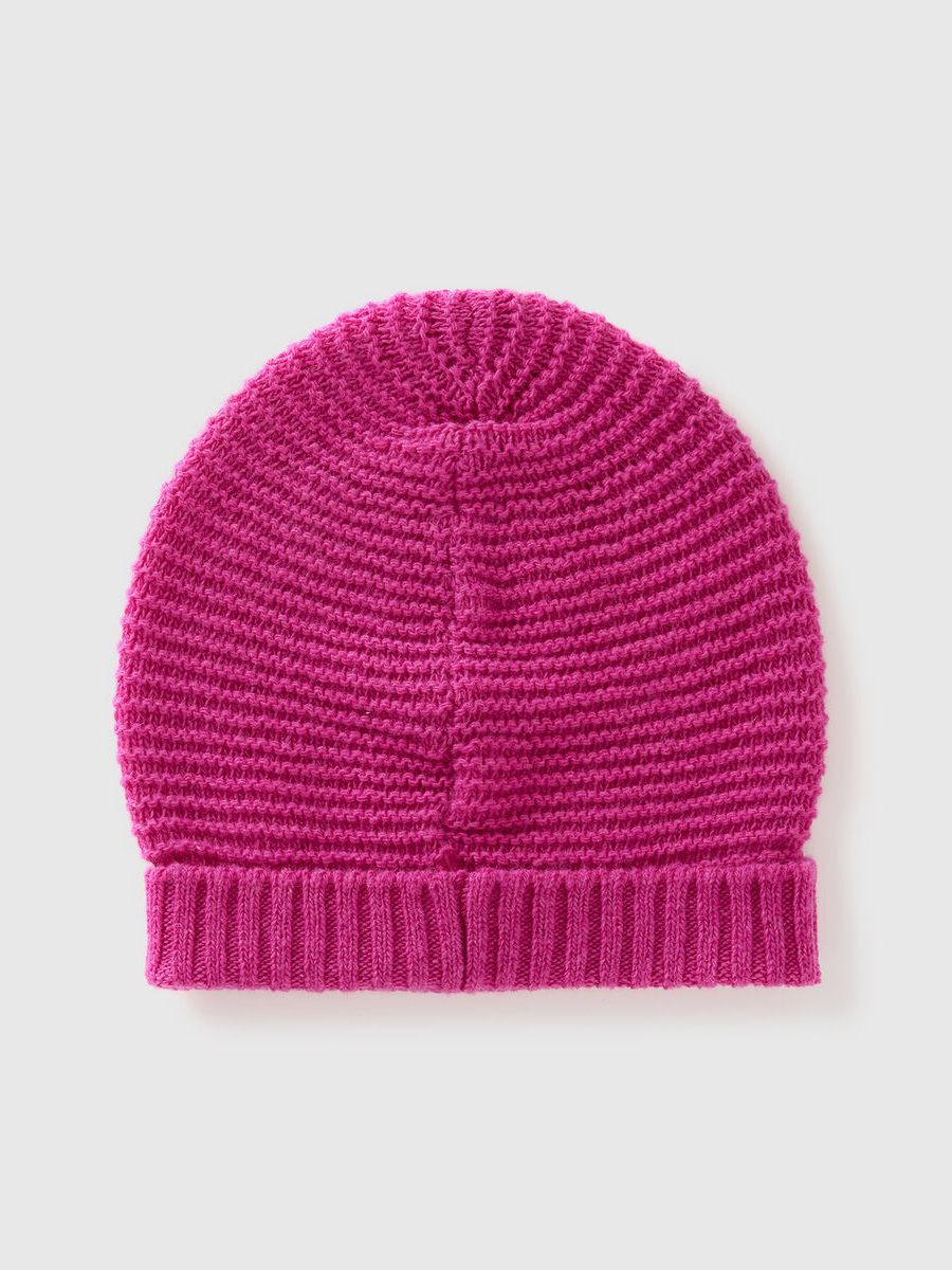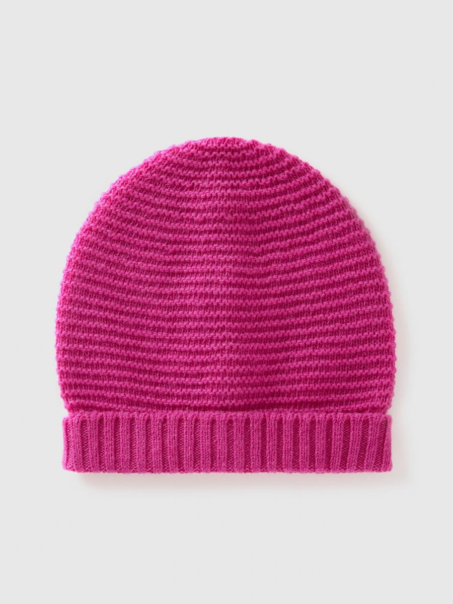 Benetton kapa za devojčicu od mekane vunene mešavine pravilnog kroja. Posebno pleteno sa razigranim šavovima na okretu. Svakodnevno, ali alternativno.