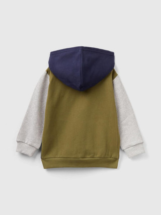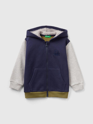 Benetton dukserica dugih rukava za dečaka sa kapuljačom od toplog pamuka. Kapuljača obložena mekim veštačkim krznom, kopčanje na patent zatvarač i džepovi našiveni na prednjoj strani. Pravilnog kroja i izvezen logo Benetton na levoj prednjoj strani. Sportski i savremeni, nezaobilazni za najhladnije dane.