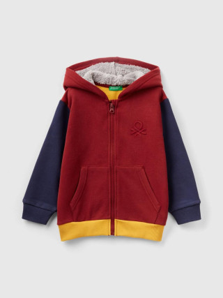 Benetton dukserica dugih rukava za dečaka sa kapuljačom od toplog pamuka. Kapuljača obložena mekim veštačkim krznom, kopčanje na patent zatvarač i džepovi našiveni na prednjoj strani. Pravilnog kroja i izvezen logo Benetton na levoj prednjoj strani. Sportski i savremeni, nezaobilazni za najhladnije dane.