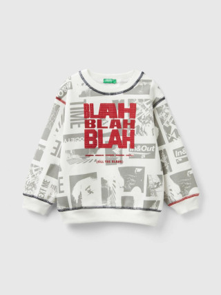Benetton dukserica dugih rukava za dečaka od meke mešavine pamuka sa toplim osec´ajem. Regular fit model, trouglasti detalj ispod grla i vidljivi šavovi. Štampa fotografija sa slikama grada po celoj površini i sloganom na prednjoj strani.