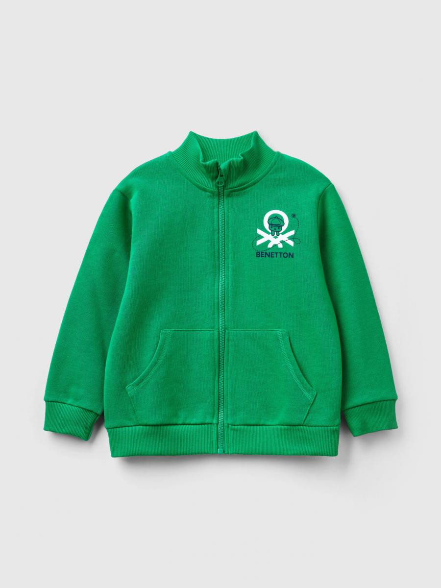 Benetton dukserica dugih rukava za dečaka od čistog organskog pamuka sa čvrstim, ali laganim osećajem. Visoka kragna, praktičan rajsferšlus, prednji našiveni džepovi i prednji logo štampe Benetton. Nosite ga uz farmerke za svakodnevni izgled.
