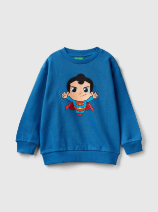 Benetton dukserica za dečaka od čistog pamuka sa laganim, ali doslednim osećajem. Opuštenog kroja, dugih rukava i okruglog okovratnika. Prednji Superman DC Comics print. Štampa Superman logotipa i izvezeni Benetton logo ispod dekoltea. Za mlade superheroje.