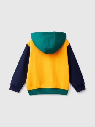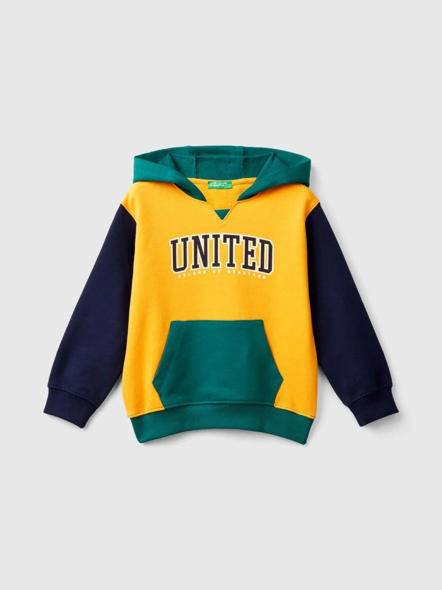 Benetton dukserica sa kapuljačom za dečaka od čistog pamuka sa postojanim, ali laganim osećajem. Regular fit model, dugi rukavi i udoban kengur džep. Osnovni i udoban komad ukrašen grafičkim printom Benetton na prednjoj strani.