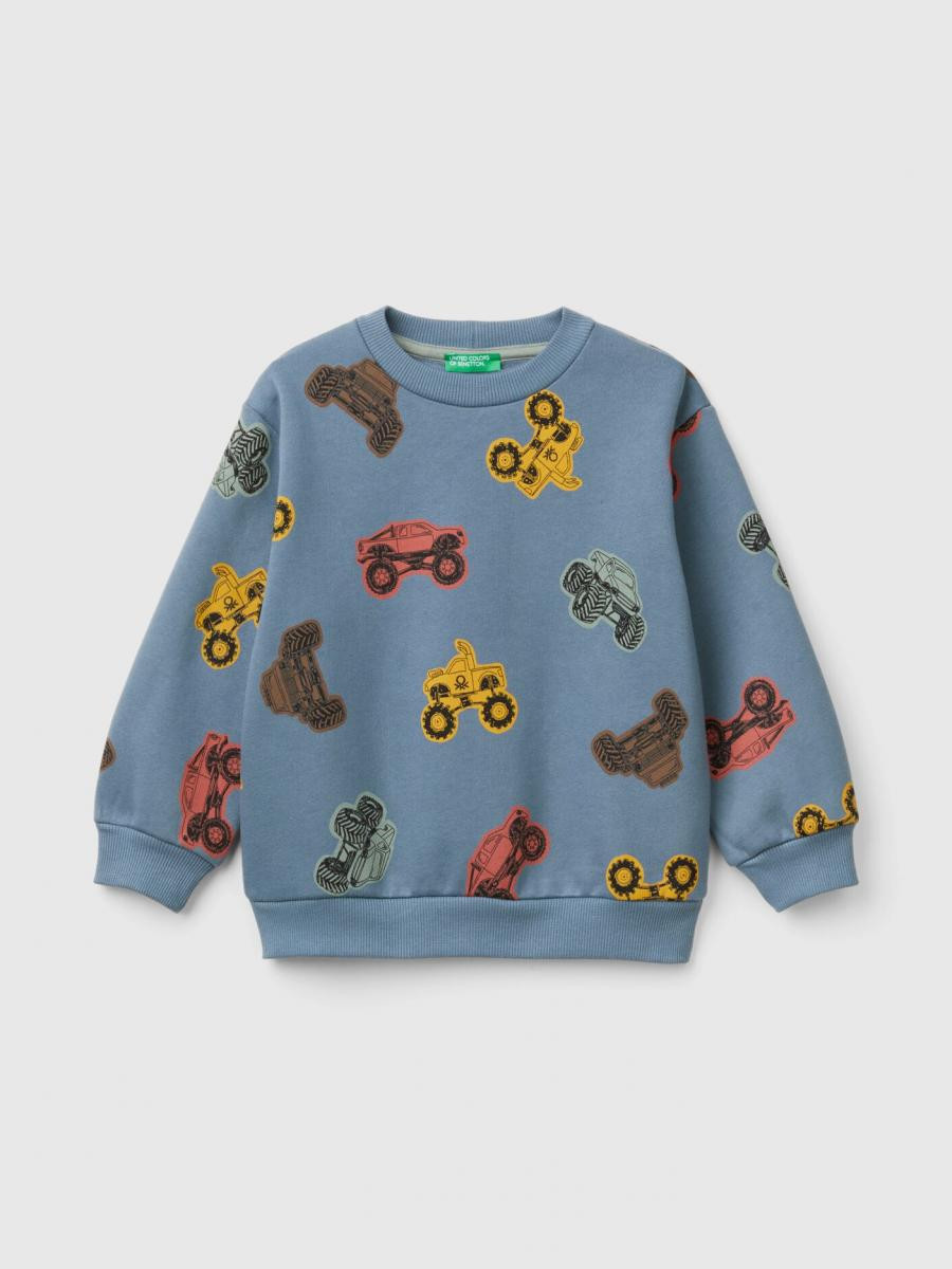 Benetton dukserica za dečaka od mešavine pamuka sa toplim osećajem. Okrugli izrez i dugi rukavi. Šareni traktorski print po celoj odeći, za zabavu i udobnu odeću.