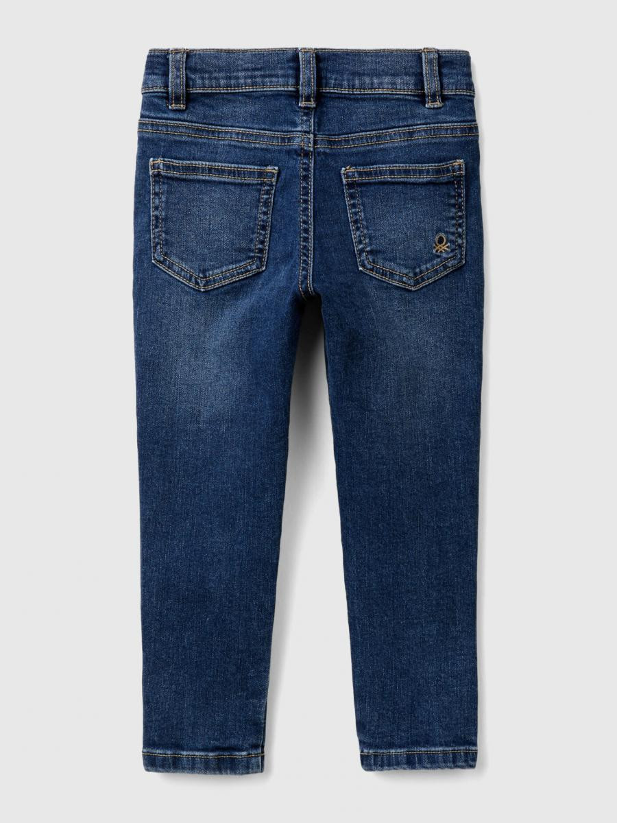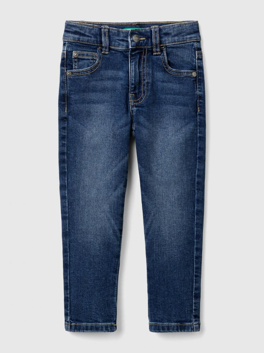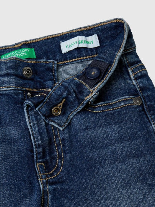 Benetton skinny fit pantalone za dečaka od rastegljivog pamučnog teksasa. Dizajn sa pet džepova sa rajsferšlusom i kopčanjem dugmetom, izvezen logo na poleđini.