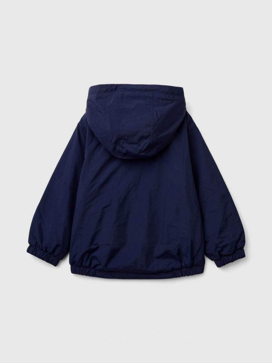 Benetton jakna za dečaka od najlona Rain Defender sa laganom podstavom, kapuljačom i oblogom od mekog flisa. Kopčanje sa rajsferšlusom i zaštitnim rajsferšlusom, prednji džepovi, vezeni logo na levoj strani grudi. Maksimalna udobnost zahvaljujući opuštenom kroju.