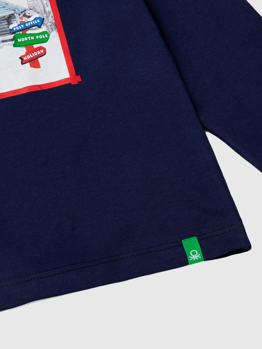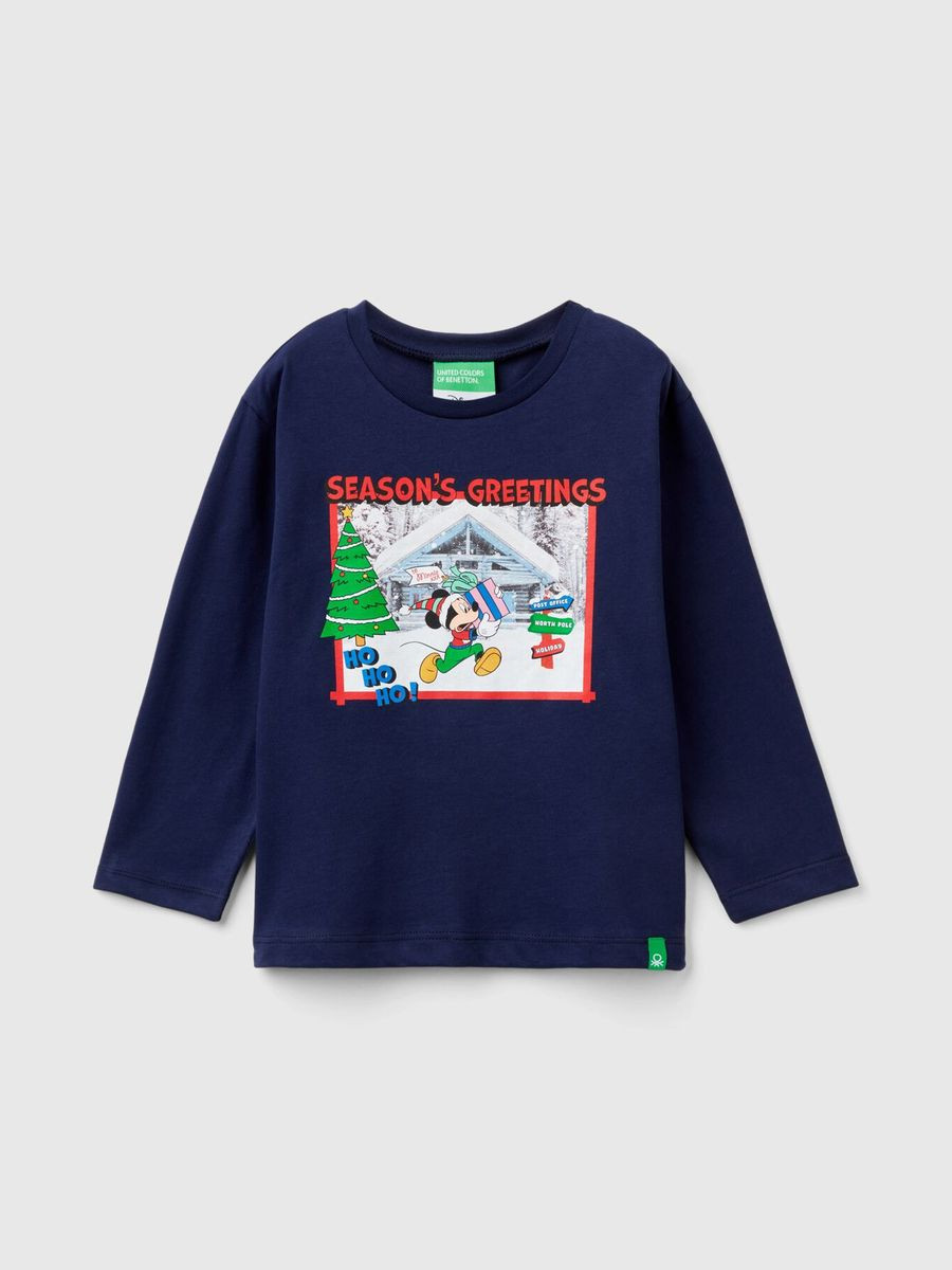 Benetton majica dugih rukava za dečaka sa okruglim izrezom od čistog toplog pamuka. Regular fit model, božićni print Mickei & Friends na prednjoj strani.