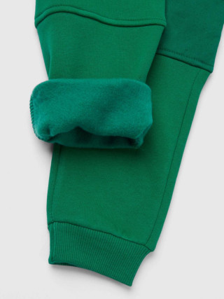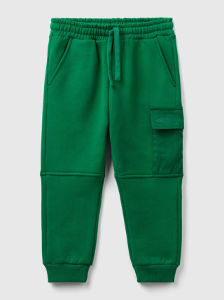 Benetton donji deo trenerke za dečaka od toplog pamuka. Opuštenog kroja, elastičnog struka sa vezicom. Džepovi na bokovima i veliki džep našiven bočno na levoj nogavici sa izvezenim logom Benetton na preklopu. Kul i sportski model.