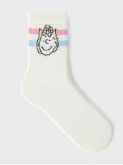 Benetton dečiji par mekih frotir čarapa do kolena od elastične mešavine pamuka. Slatka grafika sa Snoopijem na nozi i logotipom Peanuts na ulošku.