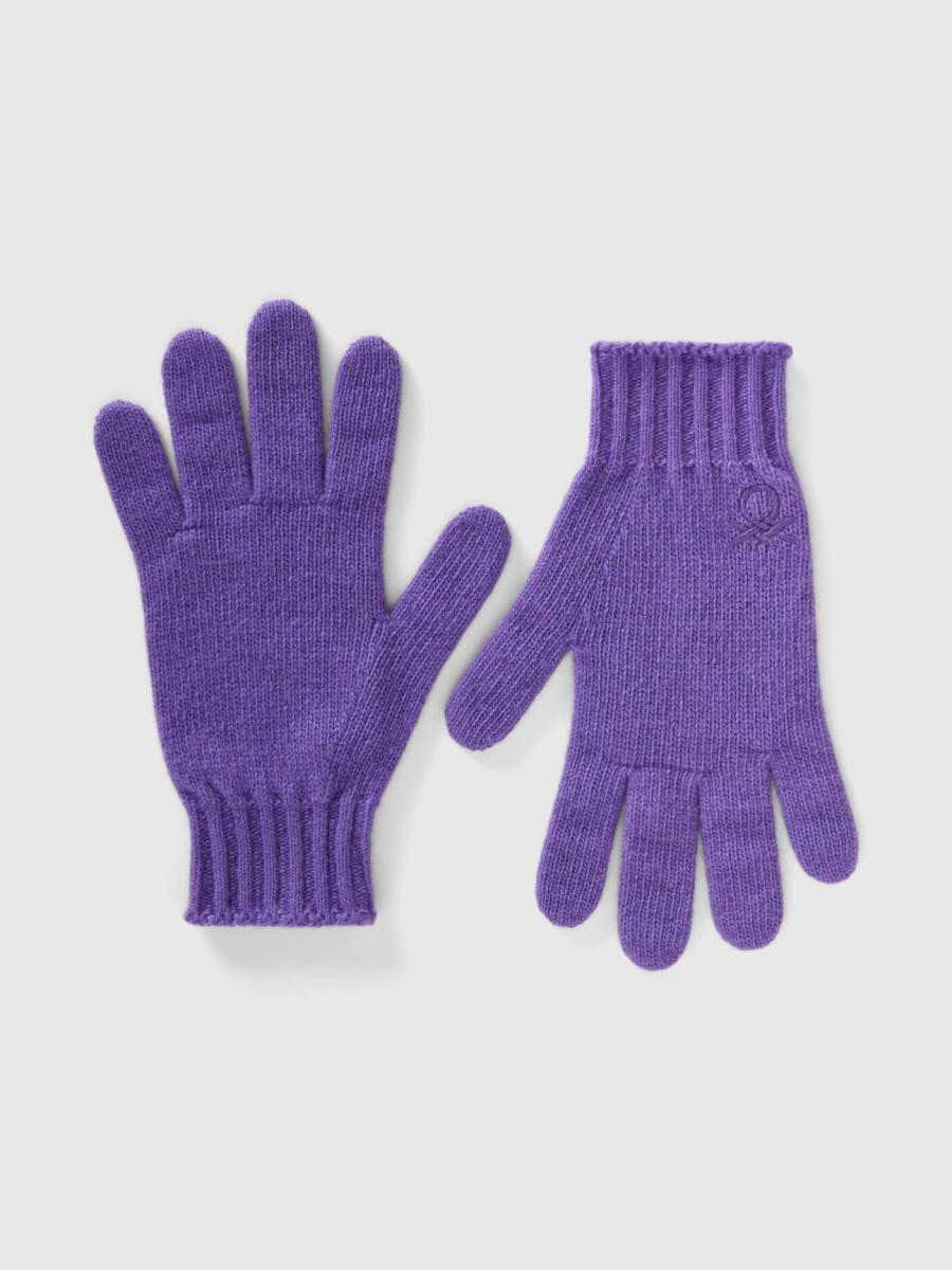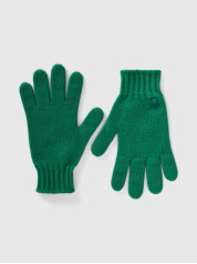 Benetton dečije rukavice od mešavine rastegljive vune. Rebraste manžetne i izvezen logo Benetton na levoj rukavici.