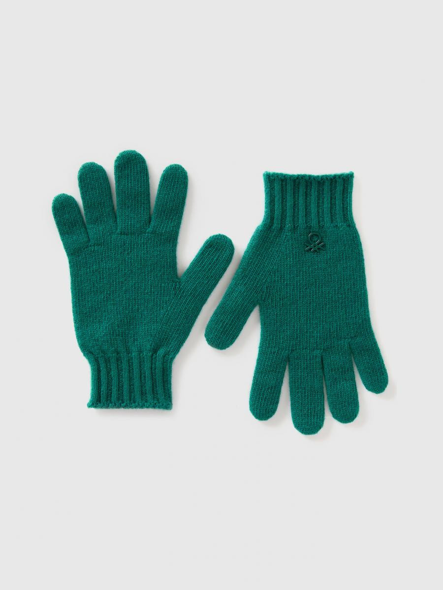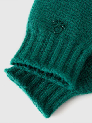 Benetton dečije rukavice od mešavine vune sa logotipom. Ovaj proizvod je napravljen na održiv način zahvaljujući projektu VASATEKS, koji omogućava da se voda iz proizvodnog ciklusa povrati i ponovo koristi u narednim procesima.