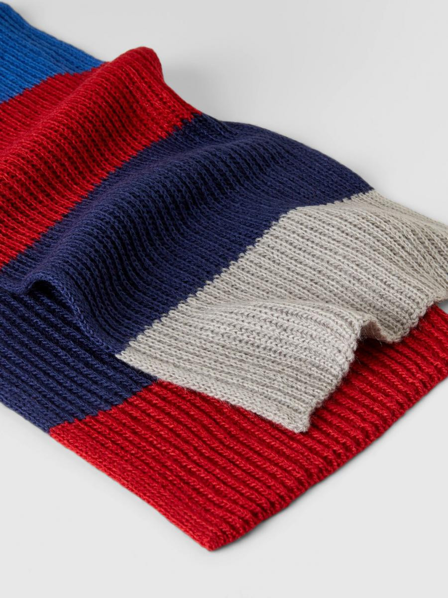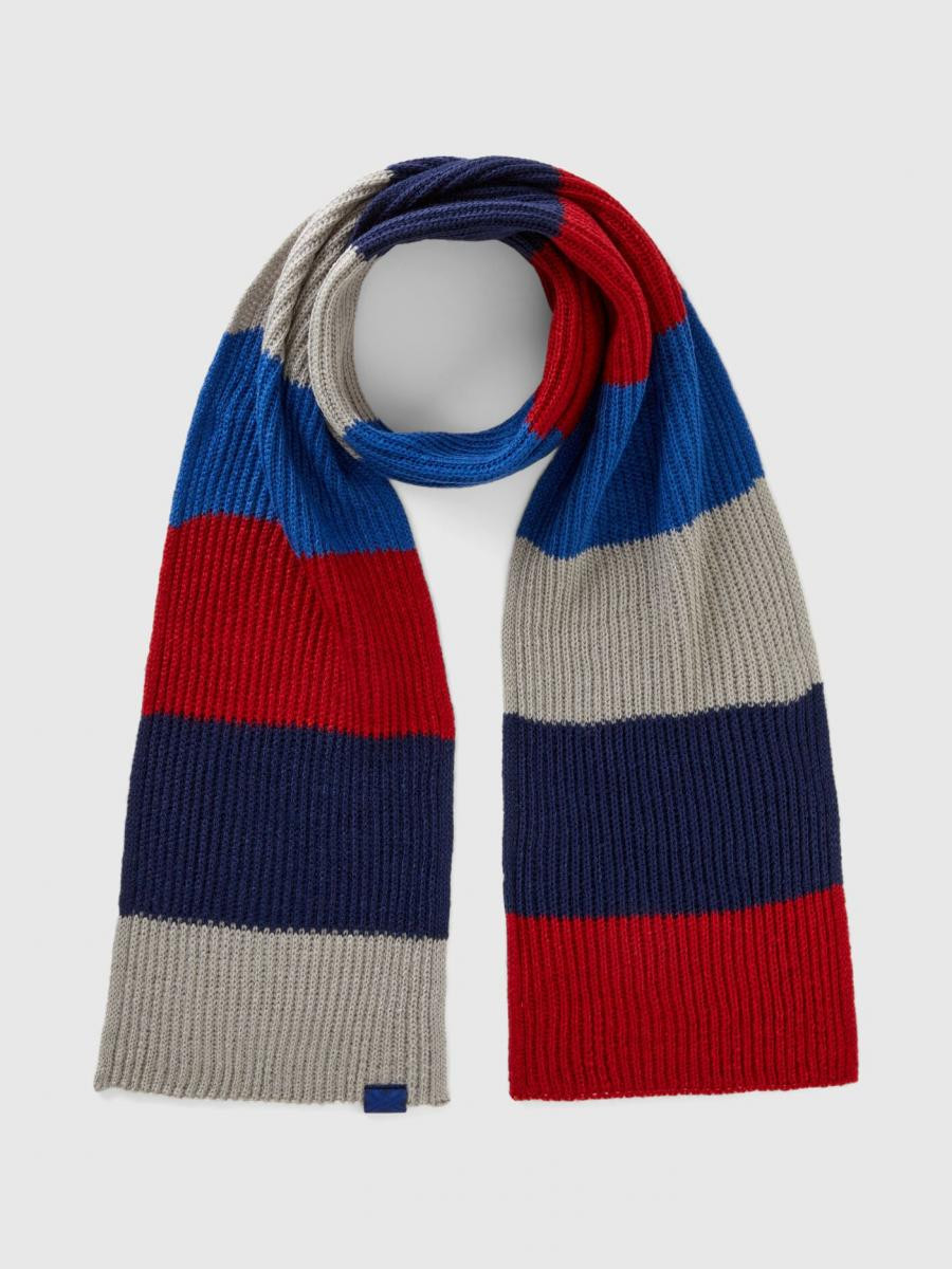 Benetton dečiji višebojni prugasti šal sa logom Benetton na jednom kraju. Topao i udoban, savršen i za hladnije dane.