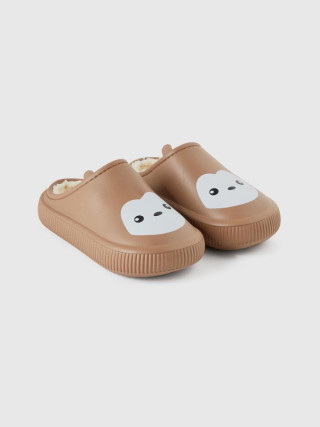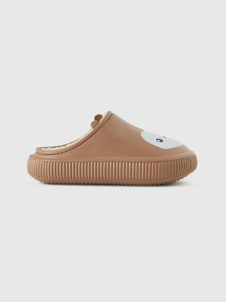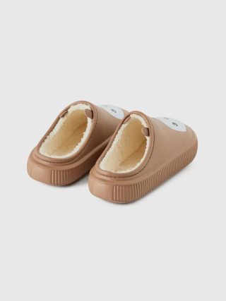 Benetton dečije papuče sa otvorenom petom od PVC-a, fleksibilan i otporan materijal. Štampa maskote na gornjem delu, topli umetci od sintetičkog krzna na ulošku.