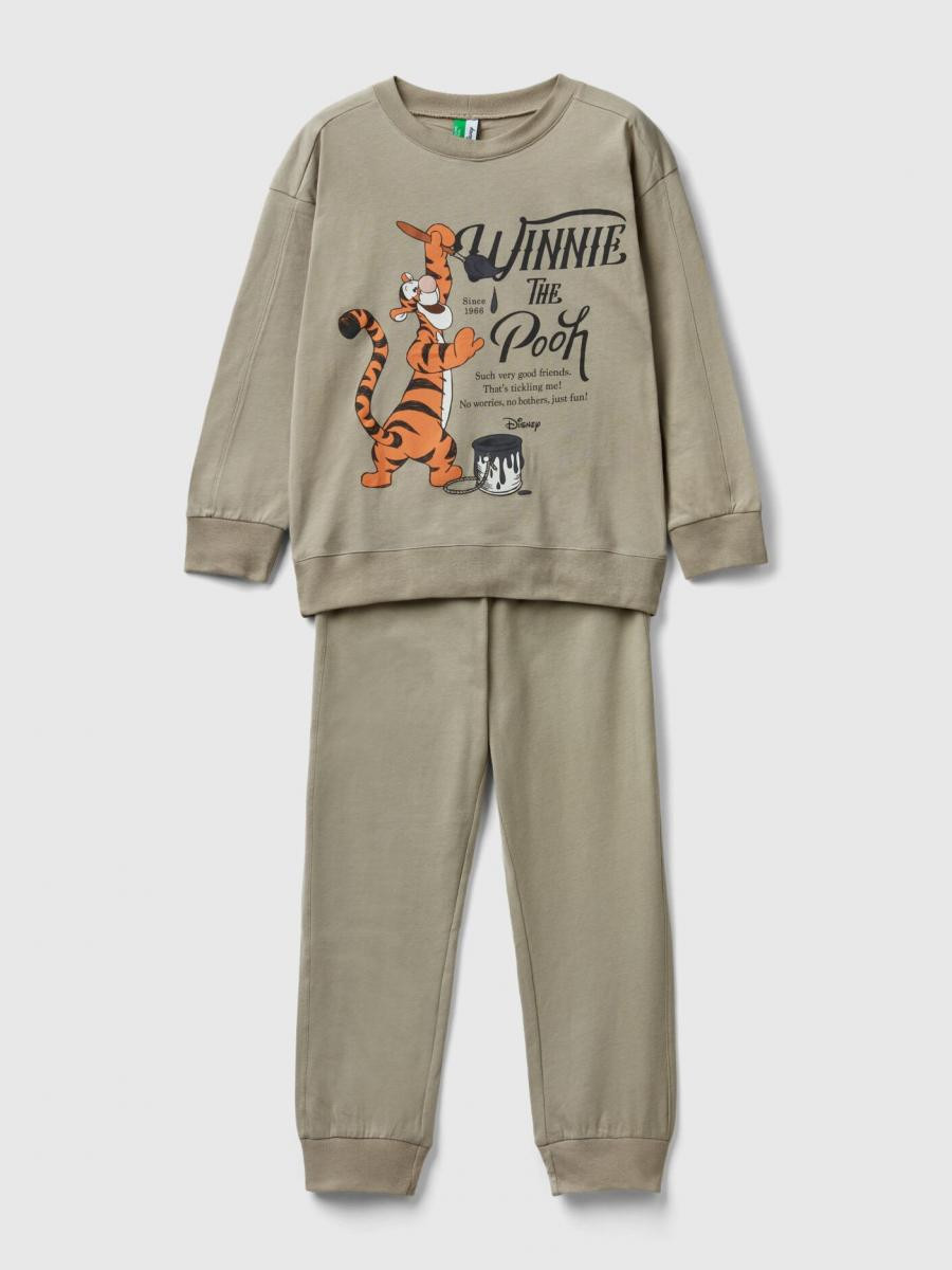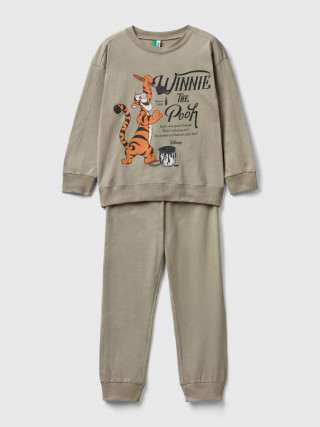 Benetton pidžama za dečaka od toplog čistog pamuka. Majica dugih rukava sa okruglim izrezom sa spuštenim ramenima i printom Disnei Tigger na prednjoj strani. Donji deo sa unutrašnjom elastičnom trakom u struku.