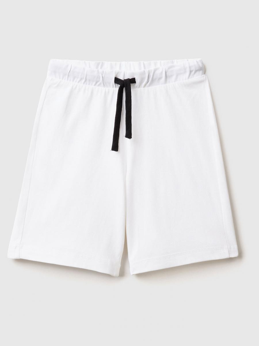 Benetton šorts za dečaka od čistog pamuka normalnog kroja. U struku sa unutrašnjom elastičnom trakom i vezicom, džep na leđima sa odštampanim velikim logom Benetton. Praktičan i udoban, savršen za kretanje na otvorenom.