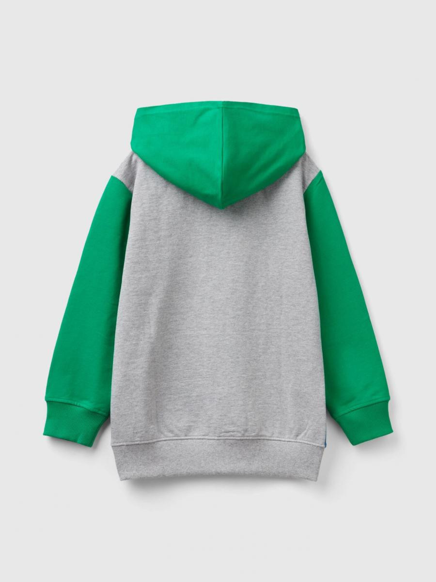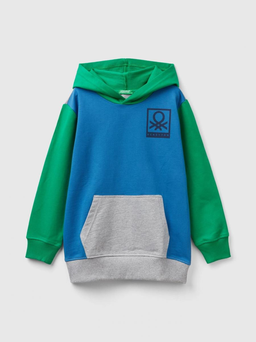 Benetton dukserica dugih rukava za dečaka od čistog laganog pamuka. Sportski stil, sa prednjim džepom u obliku kengura i štampom logotipa Benetton na prednjoj i zadnjoj strani.