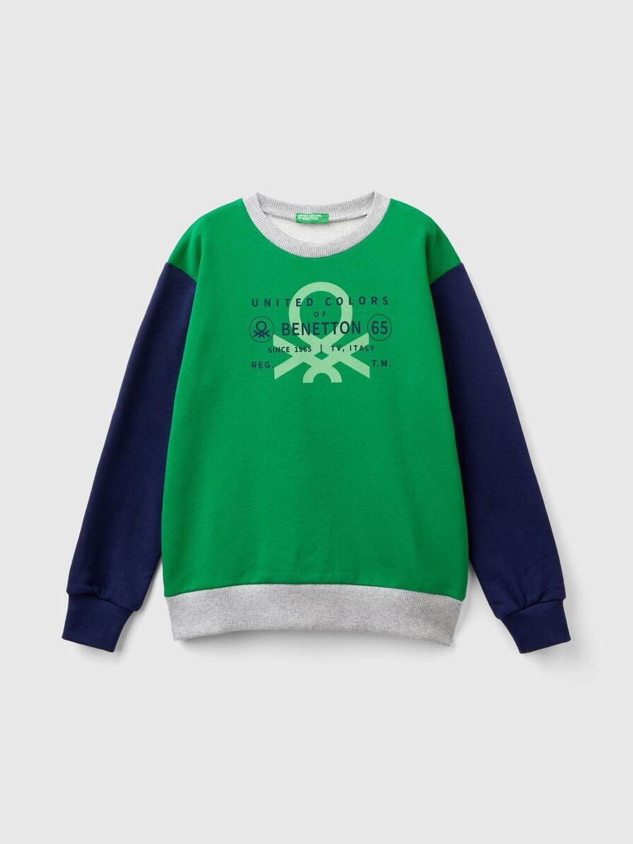 Benetton dukserica dugih rukava za dečaka sa okruglim izrezom od čistog pamuka sa čvrstim, ali laganim osećajem. Osnovni kroj za svakodnevni izgled, sa grafikom Beneton na prednjoj strani.