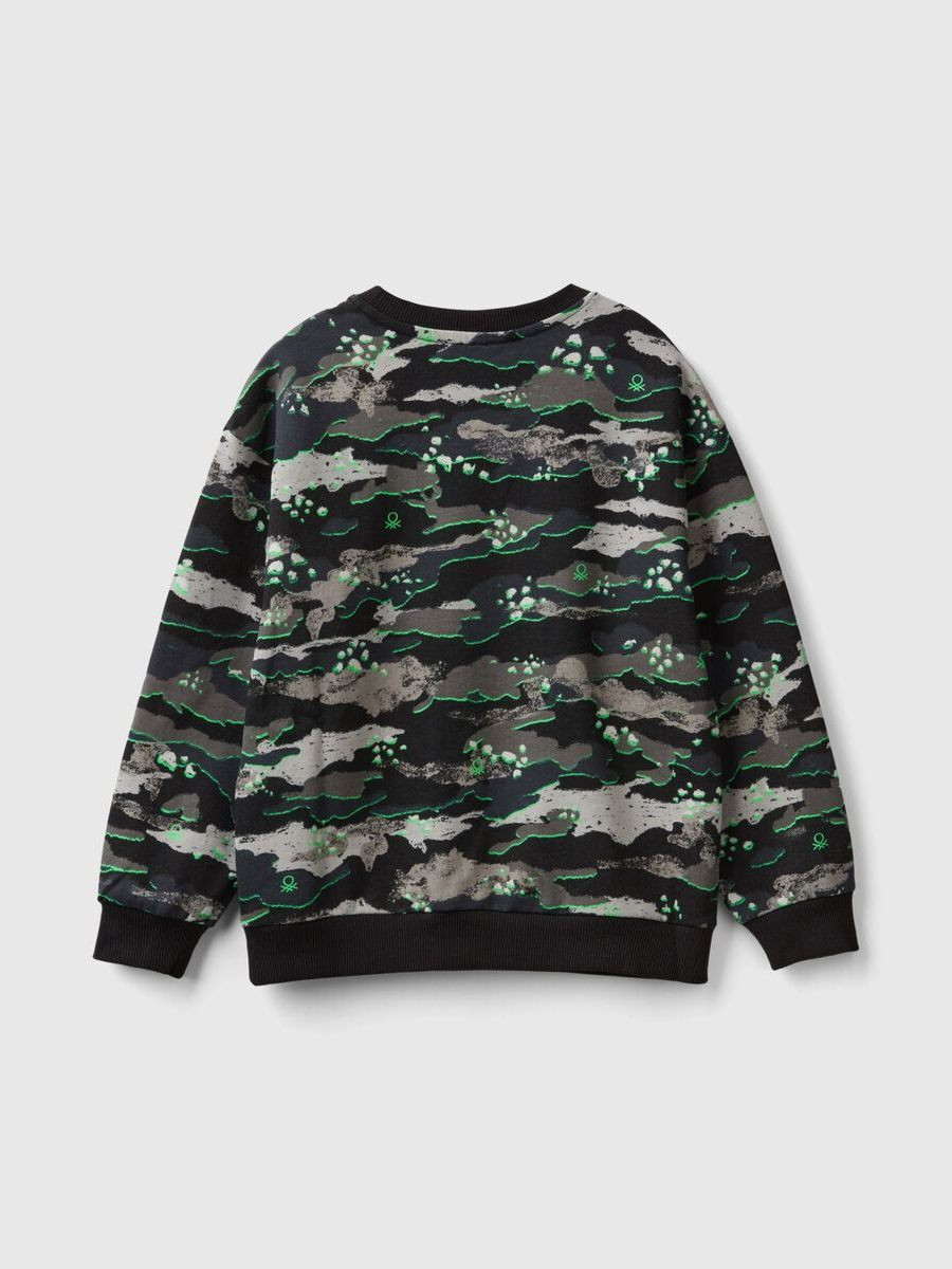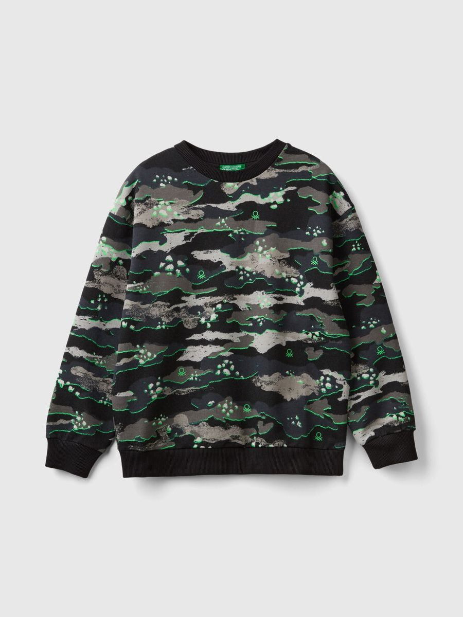 Benetton dukserica za dečaka od mekanog čistog pamuka. Okrugli izrez i dugi rukavi. Miltari print sa fluorescentnim detaljima po celoj odeći.