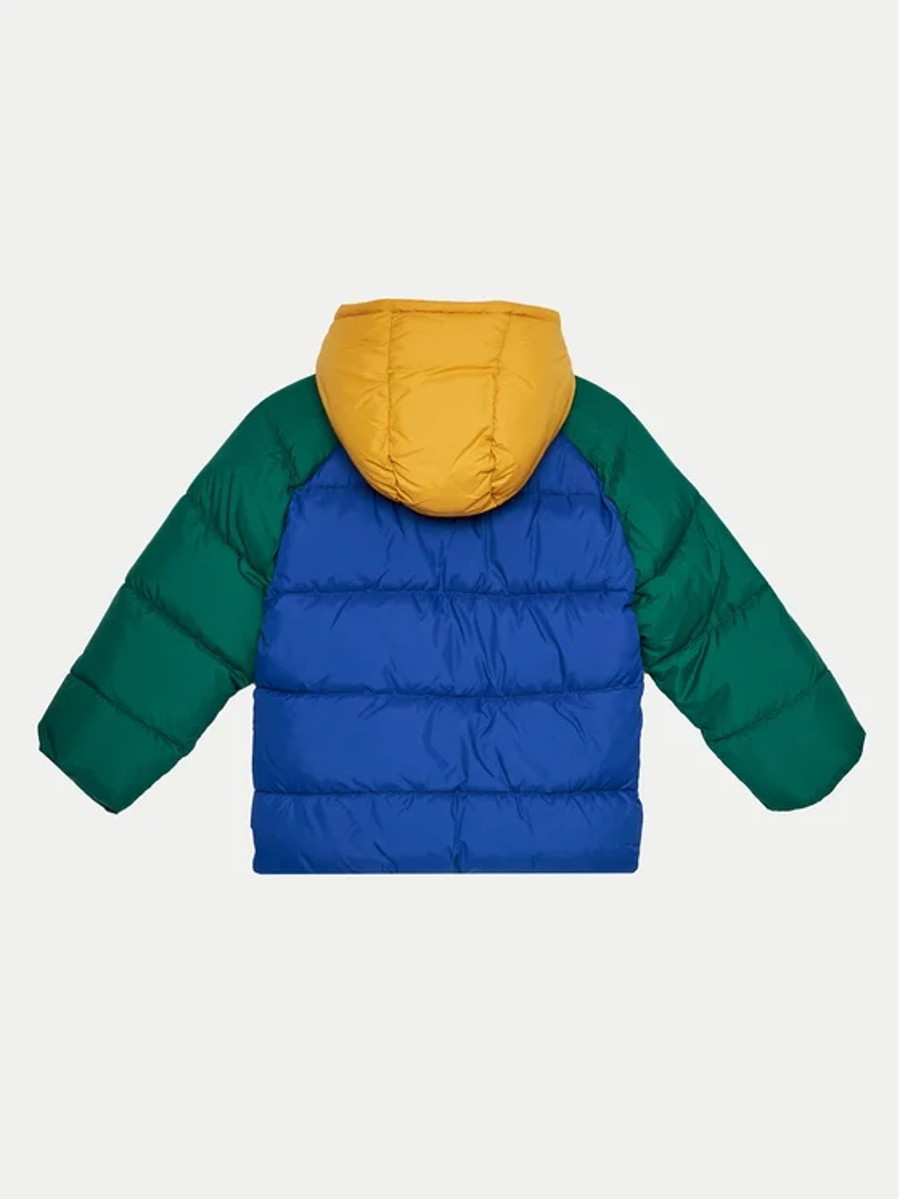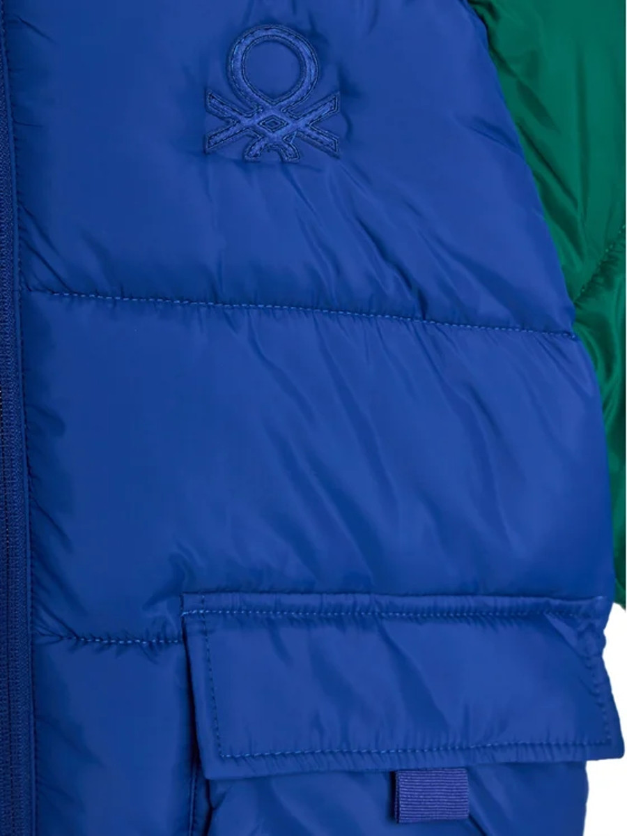 Benetton jakna sa kapuljačom za dečaka od najlona Rain Defender sa horizontalnim prošivom. Pufer jakna od tehničke Rain Defender tkanine. Topla, ali ultra lagana, sa podstavom. Otvara se rajsferšlusom, prednji džepovi sa preklopom i vezeni logo na levoj strani grudi.