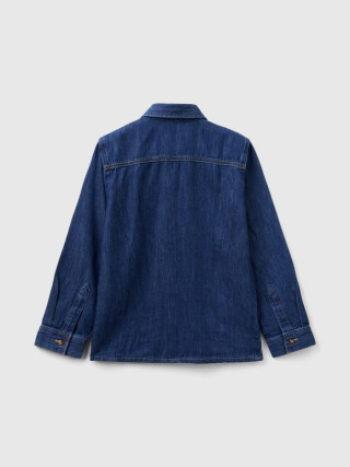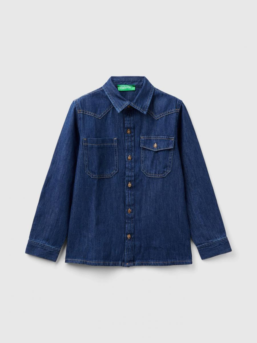 Benetton košulja dugih rukava za dečaka od laganog teksasa od 100% pamuka. Klasična kragna i prednje kopčanje sa dugmićima. Našiveni džepovi na grudima, od kojih jedan ima preklop i dugme. Western stil u juniorskoj verziji.