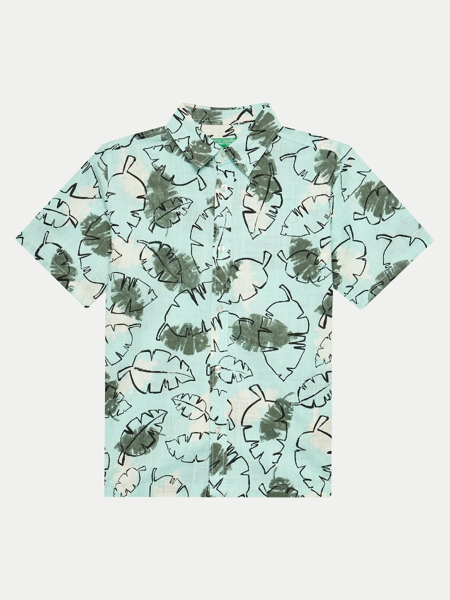 Benetton košulja za dečaka od čistog pamuka sa šarenim dezenom. Klasična kragna, kratki rukavi, kopčanje sa dugmićima na prednjoj strani. Lagana i trendi, savršeno letnje raspoloženje.