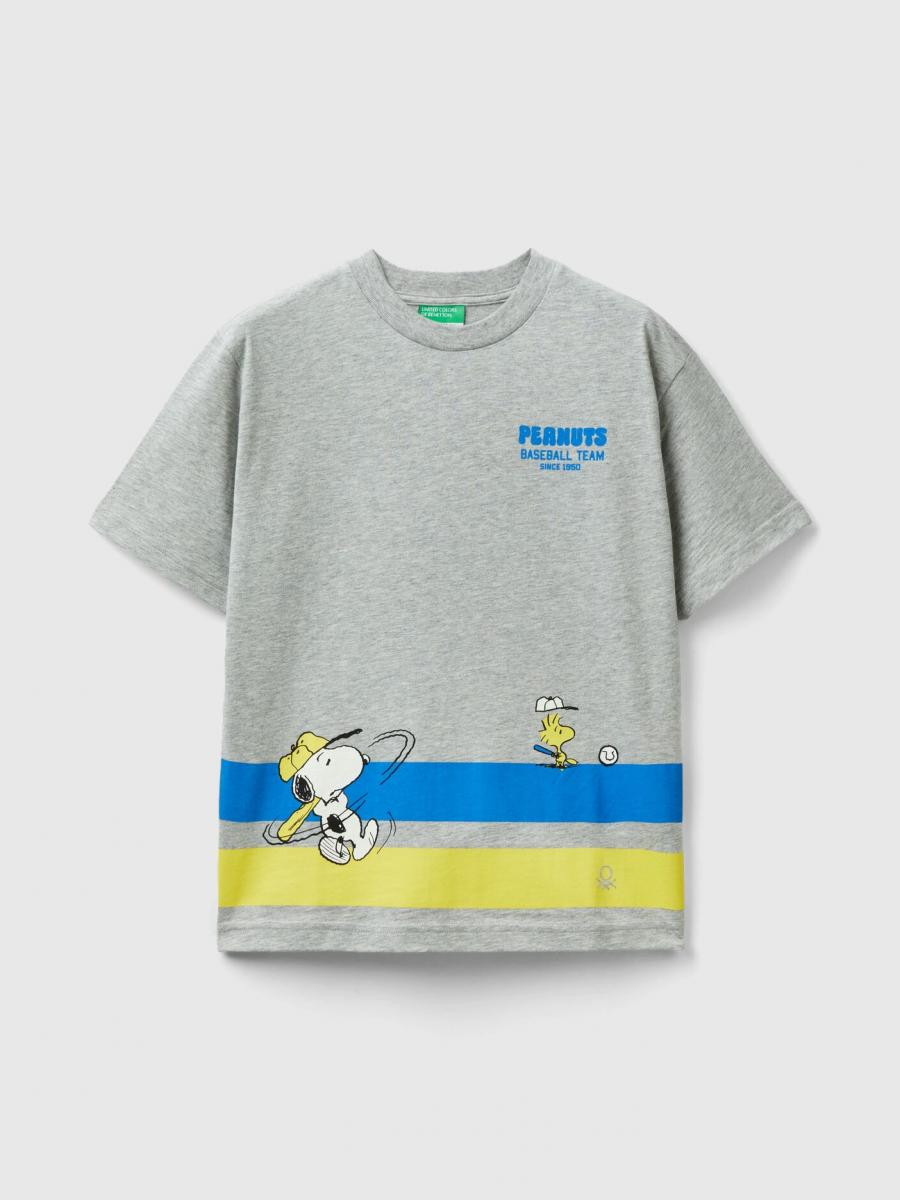 Benetton majica za dečaka sa okruglim izrezom kratkih rukava od mekog čistog pamuka. Štampa sa Peanuts znakovima na prednjoj i zadnjoj strani. Regular fit model, za zabavan i udoban odevni predmet.