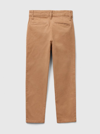Benetton pantalone za dečaka od toplog rastegljivog pamuka. Slim fit model sa normalnim strukom. Kopčaju se patentnim zatvaračem i dugmetom, prednji džepovi. Džepovi sa šavovima i mali nabori na leđima. Vezeni logo u blizini levog džepa. Odlična alternativa klasičnom teksasu.