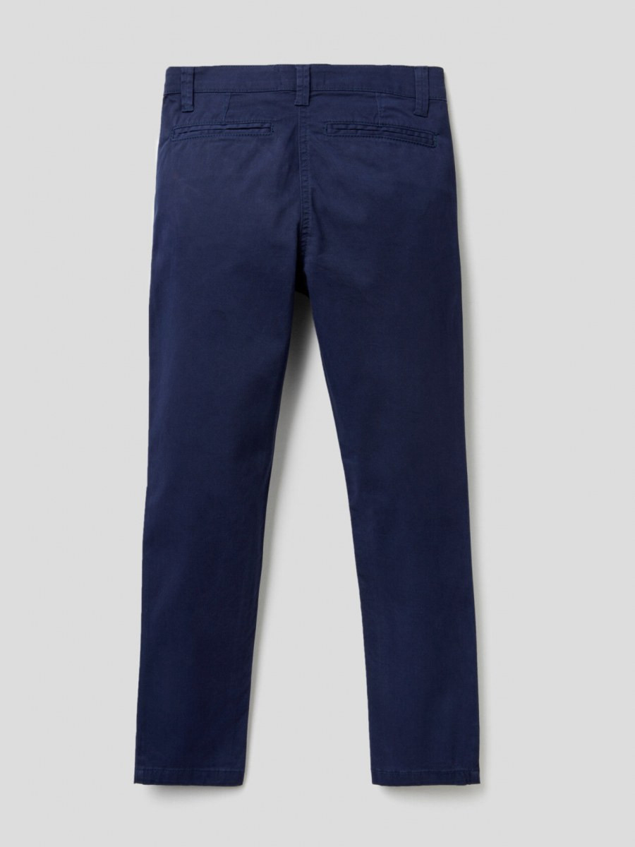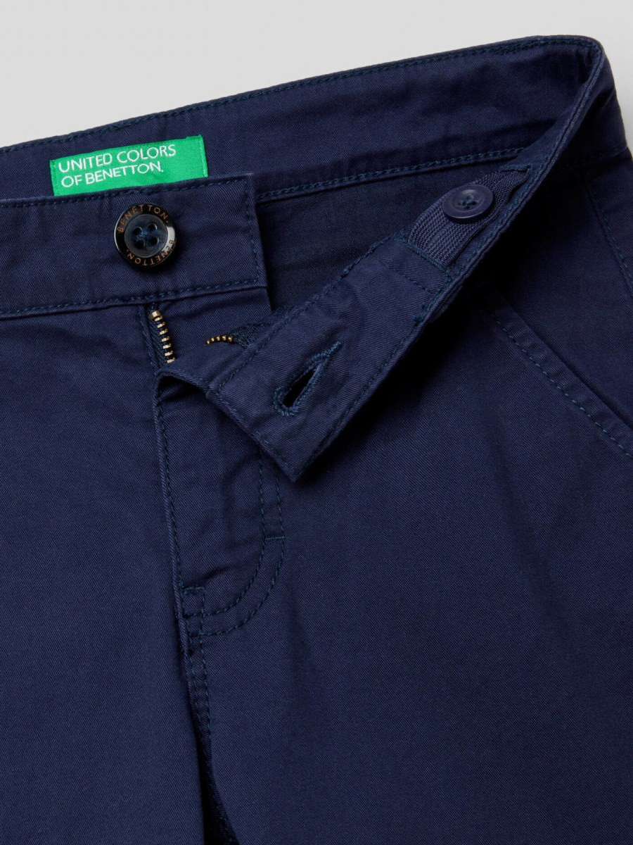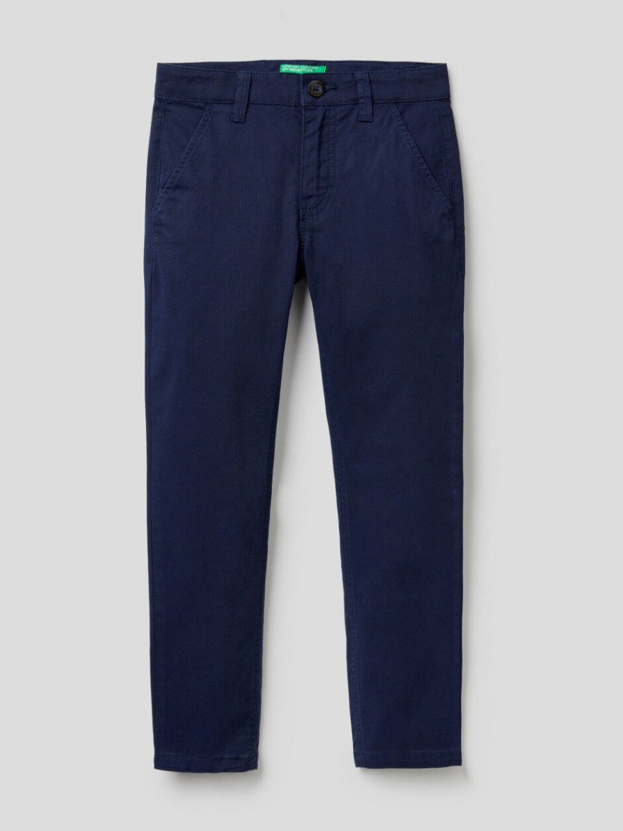 Benetton pantalone za dečaka, Slim fit chinos model od udobnog elastičnog pamuka sa dva džepa na prednjem i dva džepa na zadnjem delu. Patentno kopčanje i dugme. Regulator širine pojasa sa unutrašnje strane.