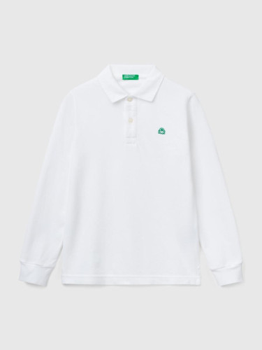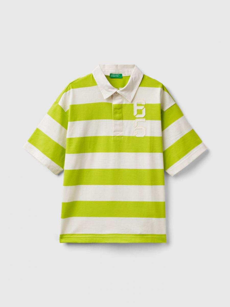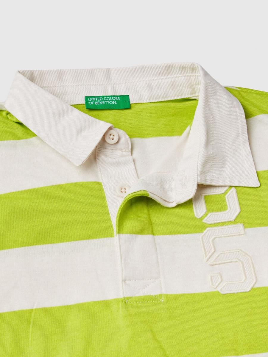Benetton polo majica kratkih rukava za dečaka od čistog pamuka. Delimično skriveno kopčanje dugmićima, kragna i vezeni detalj na levoj strani grudi od kepera. Opušten kroj, za cool i moderan odevni predmet inspirisan ragbijem.