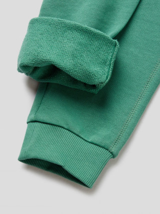 Benetton donji deo trenerke za dečaka od čistog pamuka sa čvrstim, ali laganim osećajem. Struk sa unutrašnjom elastičnom trakom i vezicom za zatezanje u boji. Rebrasti pleteni donji deo nogavica. Našiven džep na leđima sa logom Benetton.
