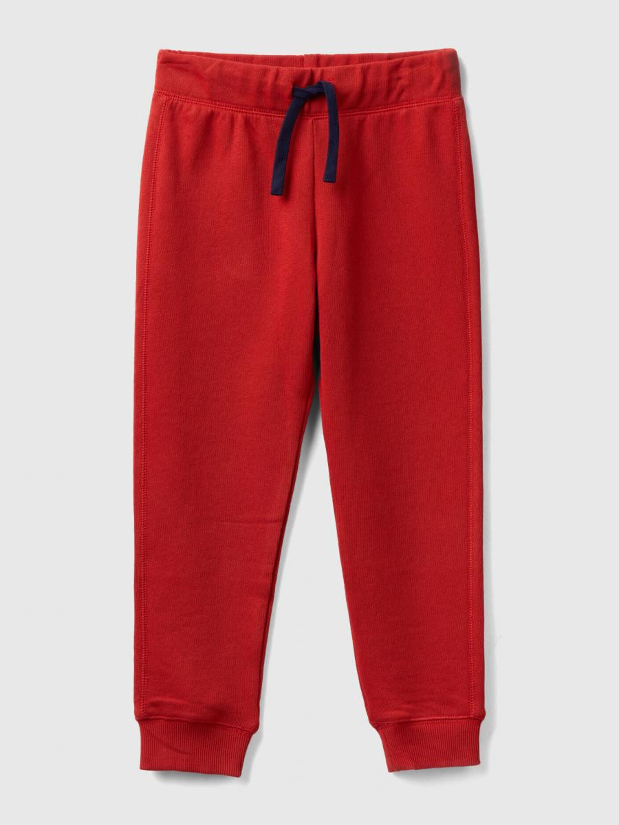 Benetton donji deo trenerke za dečaka od čistog pamuka sa čvrstim, ali laganim osećajem. Struk sa unutrašnjom elastičnom trakom i vezicom za zatezanje u boji. Rebrasti pleteni donji deo nogavica. Našiven džep na leđima sa logom Benetton.