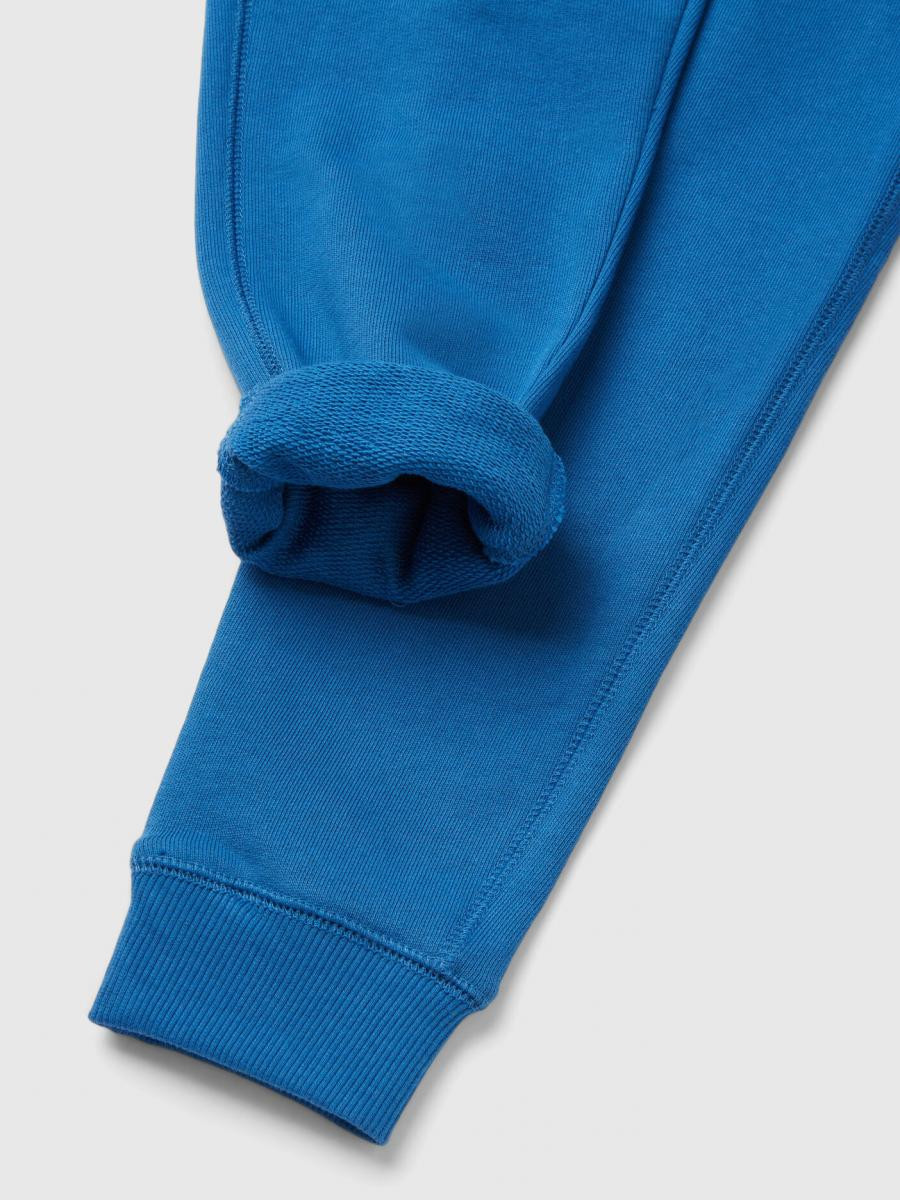 Benetton donji deo trenerke za dečaka od čistog pamuka sa čvrstim, ali laganim osećajem. Struk sa unutrašnjom elastičnom trakom i vezicom za zatezanje u boji. Rebrasti pleteni donji deo nogavica. Našiven džep na leđima sa logom Benetton.