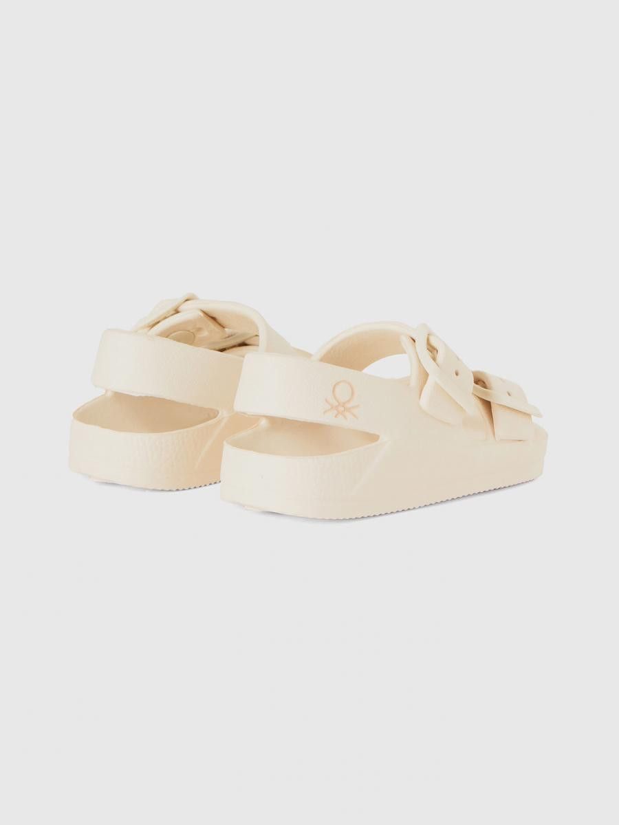 Benetton dečije sandale napravljene od EVA, veoma lagane, otporne gume koja se može prati. Dvostruki kaiš sa podesivim kaišem, konturirani uložak, logo na peti. Maksimalna udobnost i casual stil, koji morate imati tokom toplijih meseci.
