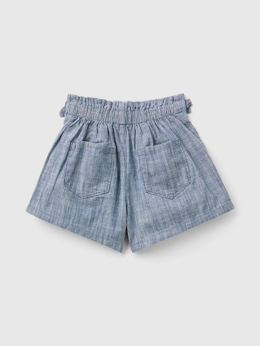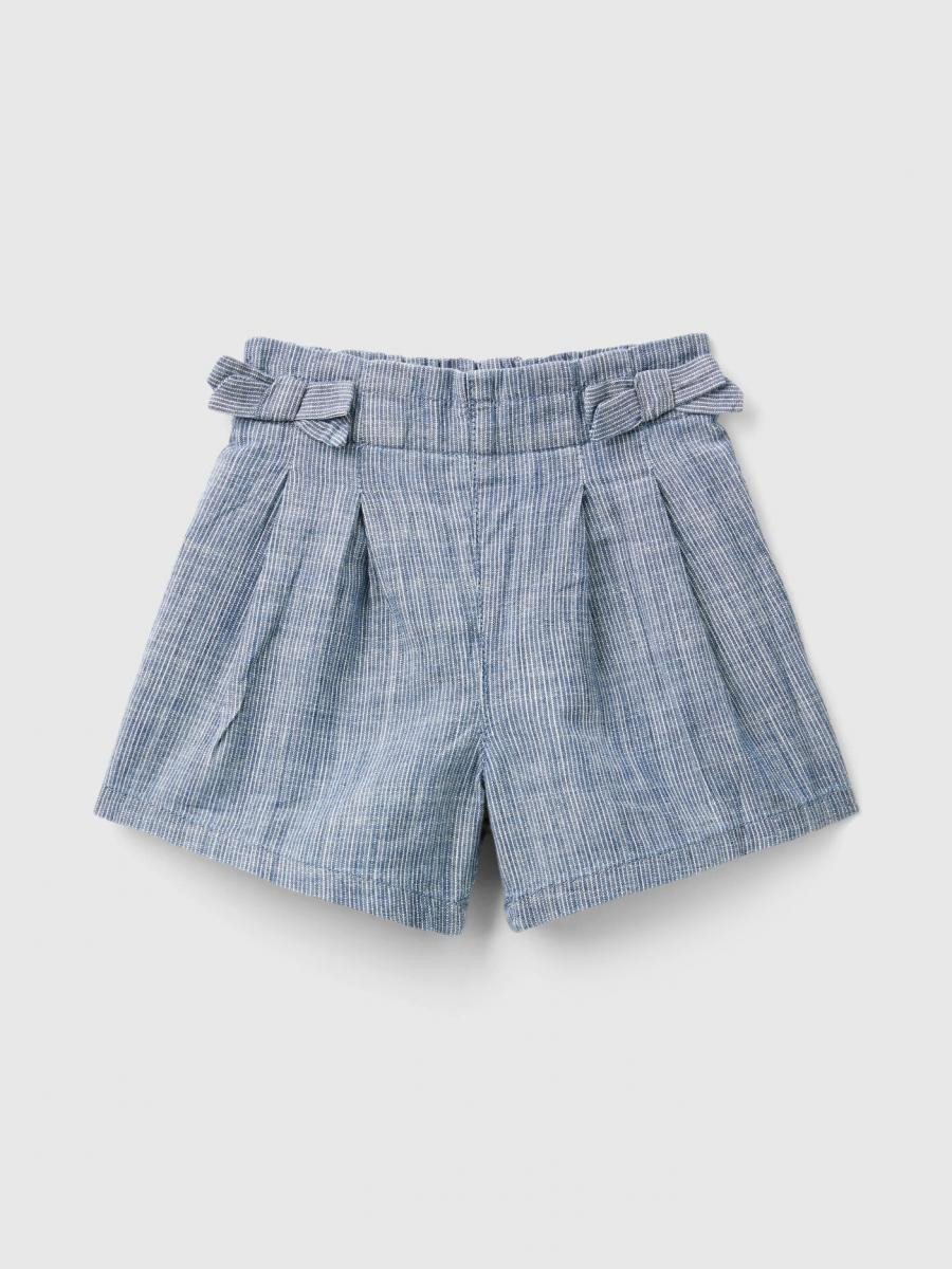 Benetton šorts za devojčicu od čistog pamuka sa tankim prugama. Visoki skupljeni struk sa unutrašnjom elastičnom trakom pozadi i mašnama na prednjoj strani. Lagan i udoban, za modernu, ženstvene kombinacije.