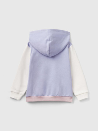 Benetton dukserica dugih rukava sa kapuljačom za devojčicu standardnog kroja od meke mešavine pamuka. Otvaranje na patent zatvarač, našiveni džepovi i vez na levoj prednjoj strani grudi. Za svakodnevno nošenje, idealan kao dodatni sloj.